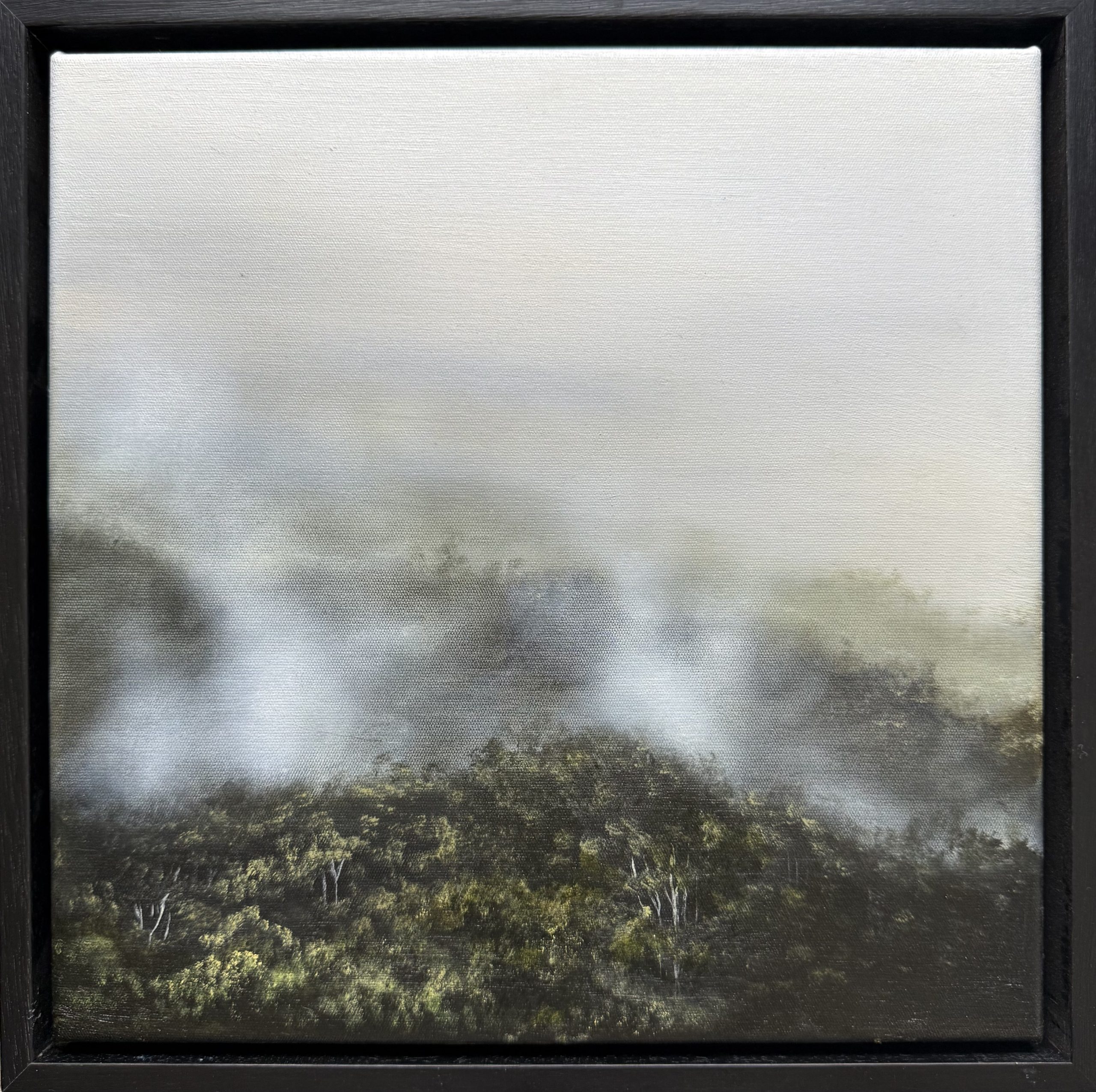 Ready to hang, original oil painting on stretched canvas with black oak floating frame.