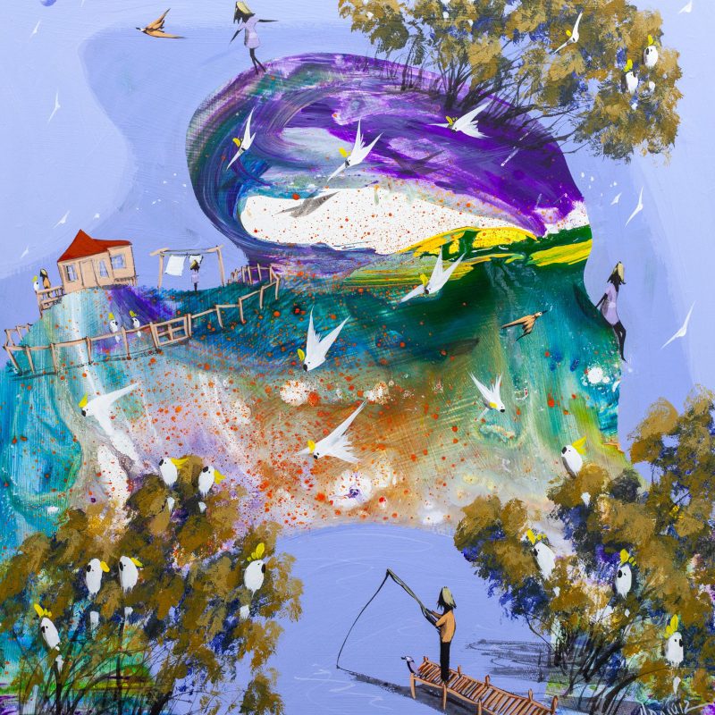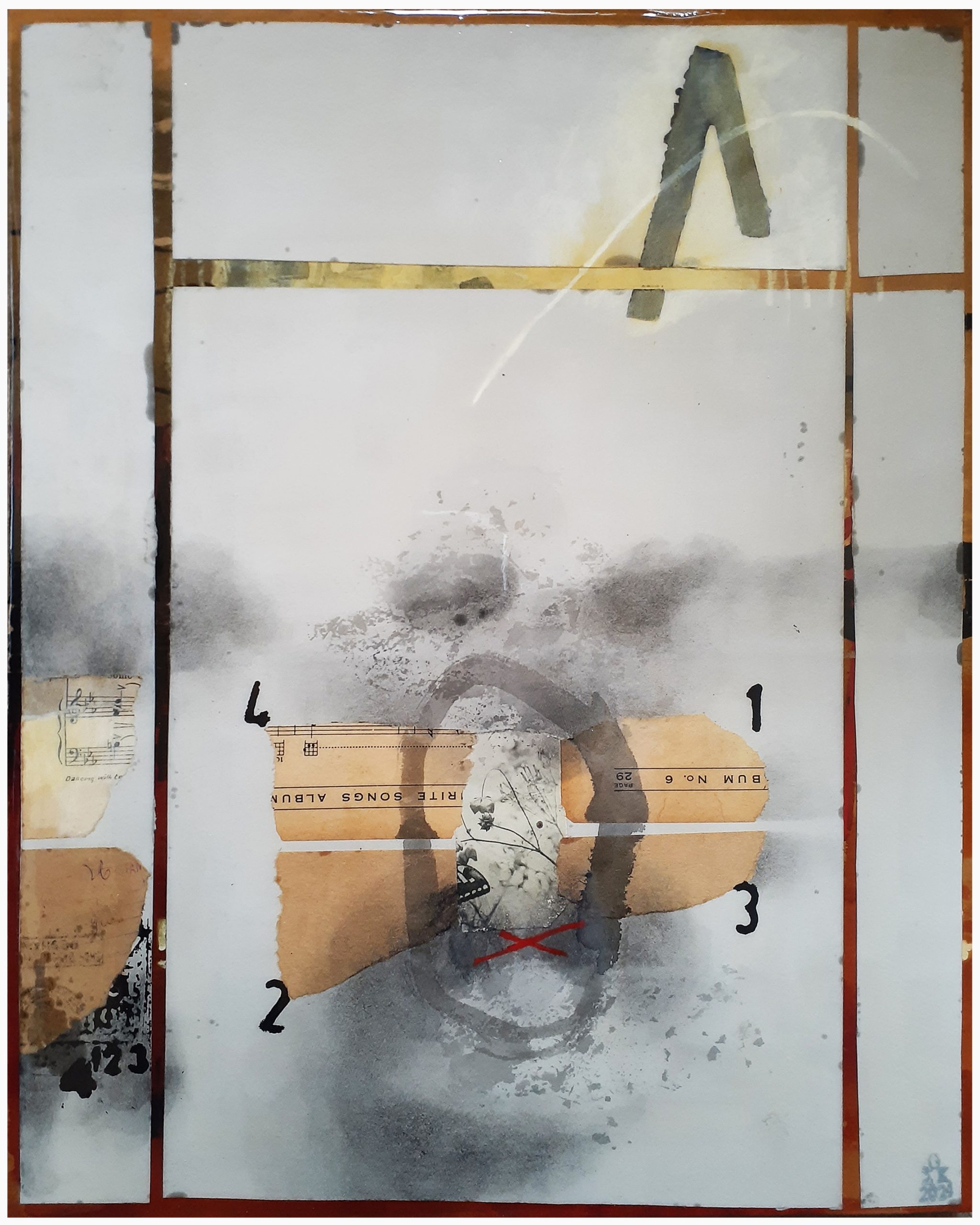 “No. 423” is a original mixed media artwork by Melbourne abstract artist G Kustom Kuhl that brings back to life vintage music sheets, papers and prints giving them a whole new meaning and existence. The work has been worked into a grid format that allows coloured background work to peep through that adds to the final representation of the work. These are the deep hidden aspects of growth, past thoughts and emotions that always have influence on the learnings of us all. The central abstract work explores the the attraction of many aspects that have been transformed into something new allowing for a new found freedom. Artwork is a mixed media piece that includes pencils, inks, paint, vintage papers, vintage images and stencils all on artist quality paper, Saunders Waterford 320gsm paper that has been adhered to board. Clear coated with a polyurethane gloss coats for protection and finished result. Painted black sides. Supplied with signed certificate of authenticity.