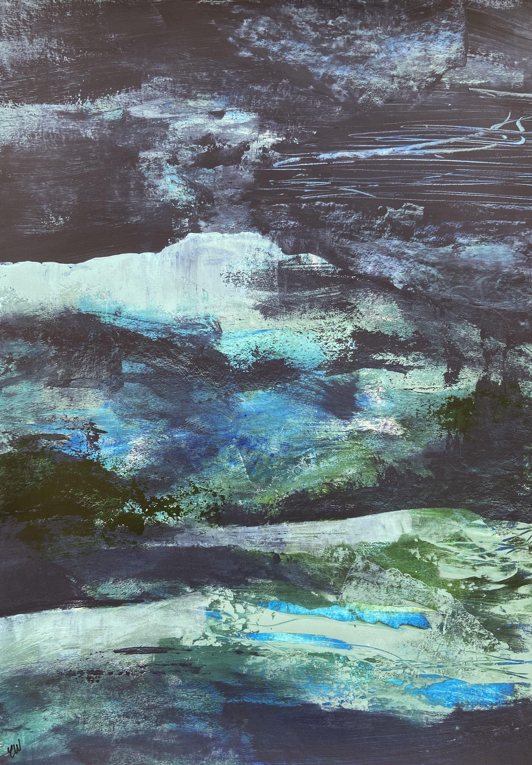 A beautiful abstract landscape painting with lots of detail. 59.4 x 42 cm (A2 size). Acrylic on paper. Frame not included. Requires framing.