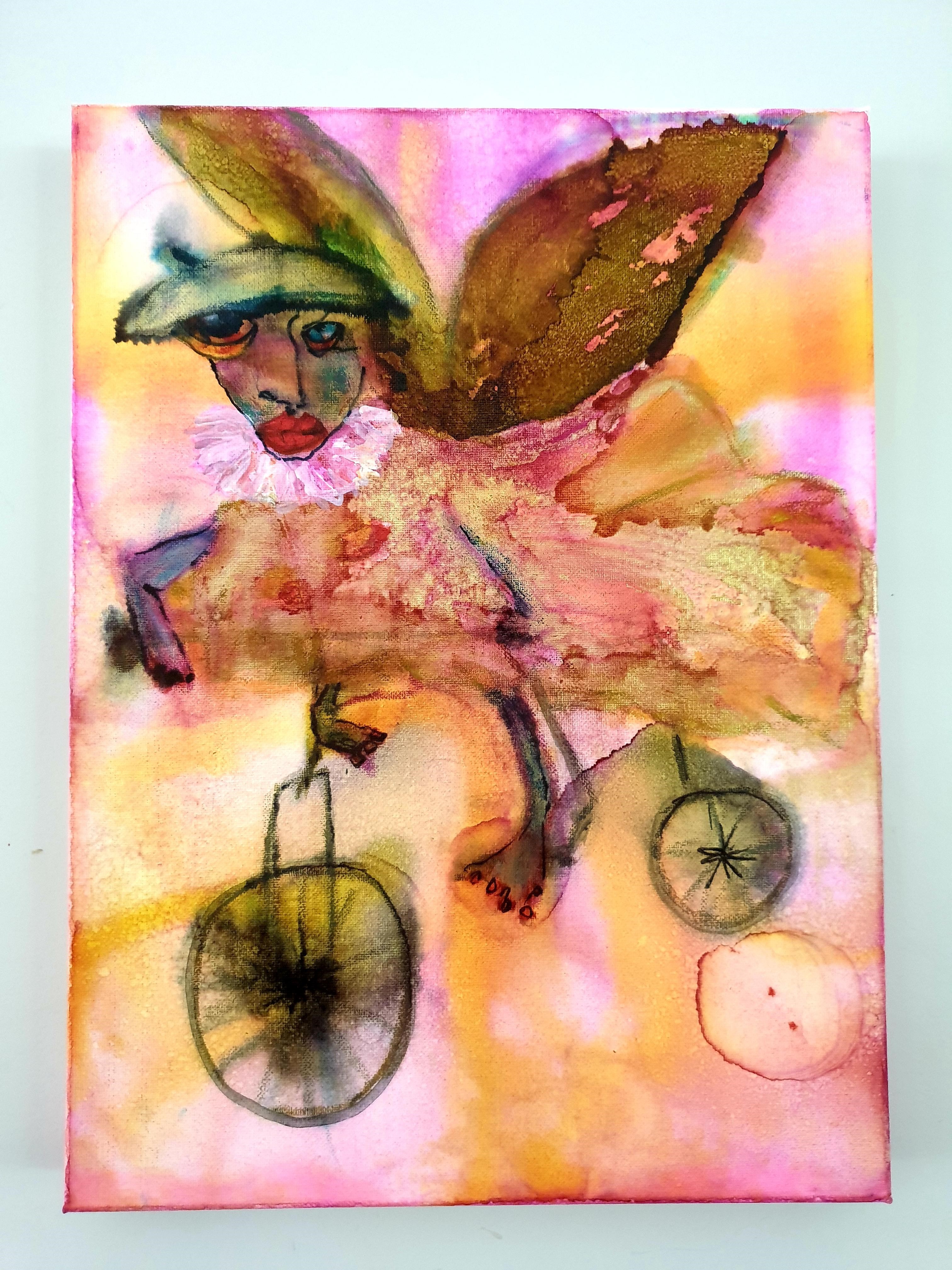 Abstract original acrylic and ink on stretched canvas ready to hang 30x40cm