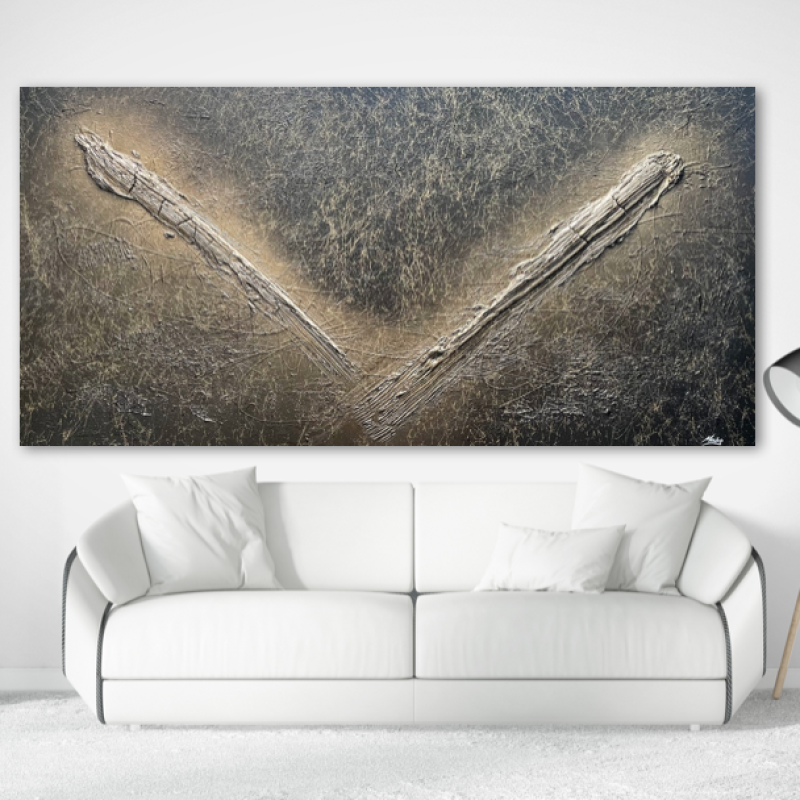 It is acrylic on stretched canvas and comes framed in natural timber.