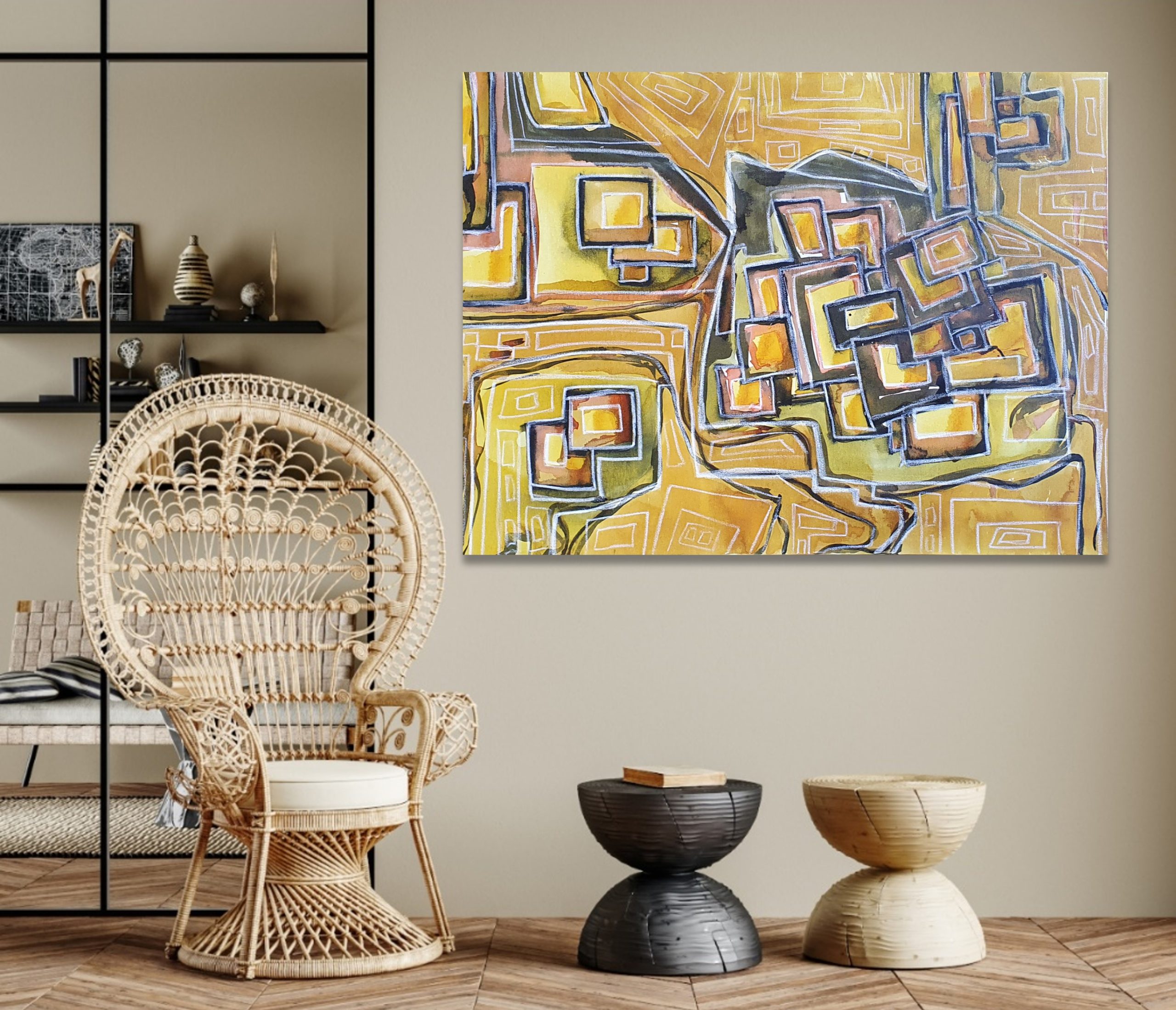 Acrylic and ink on canvas