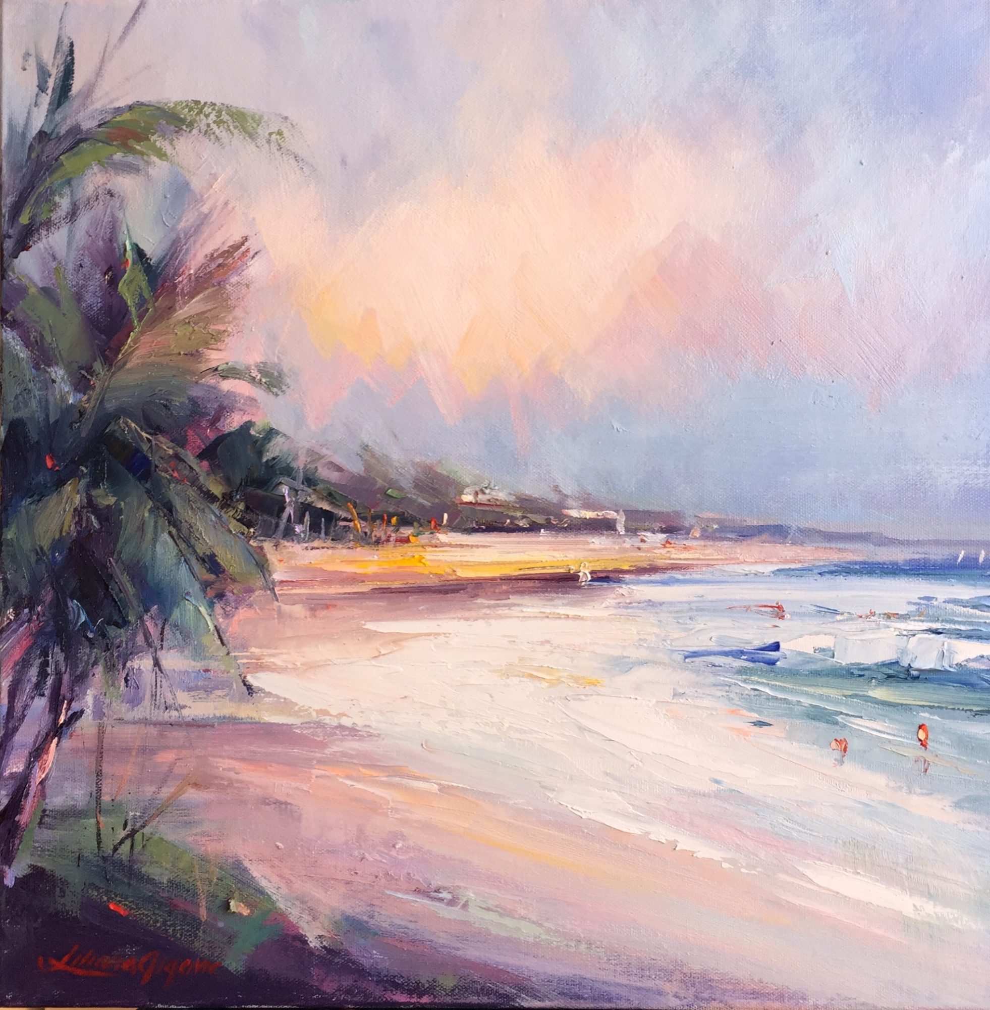 This artwork is No 5 in the series of Noosa’s Main beach. I’ve been doing paintings from Noosa and Qld. Inspired by my trip to Noosa Heads last year. I was mesmerized by beautiful beaches that surround Noosa Heads.