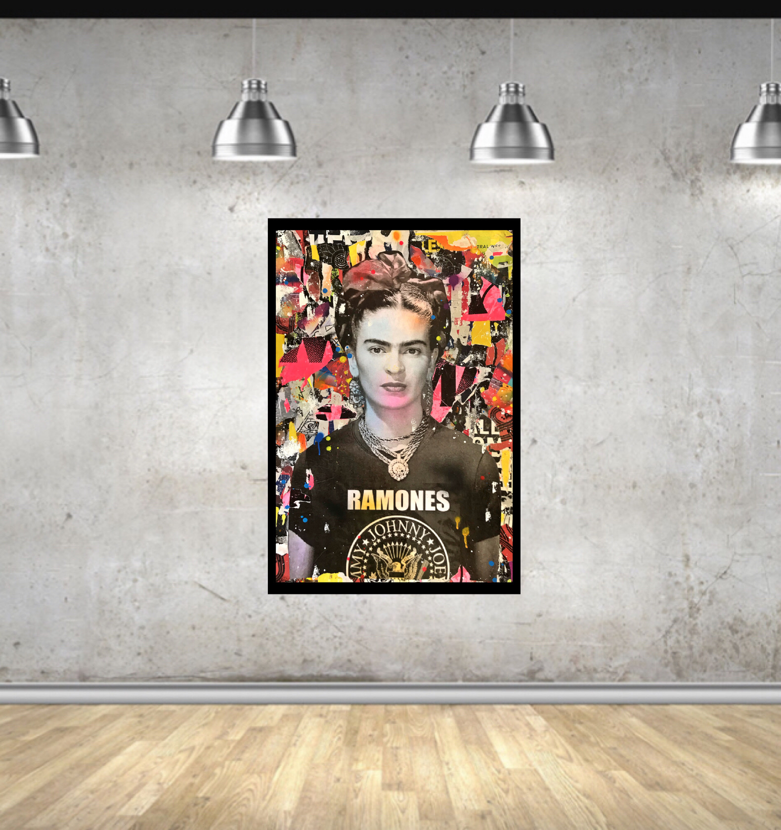 The main image of Mexican Artist Frida Kahlo was then added and further overlaid with paper and paint to give a worn rustic appearance.