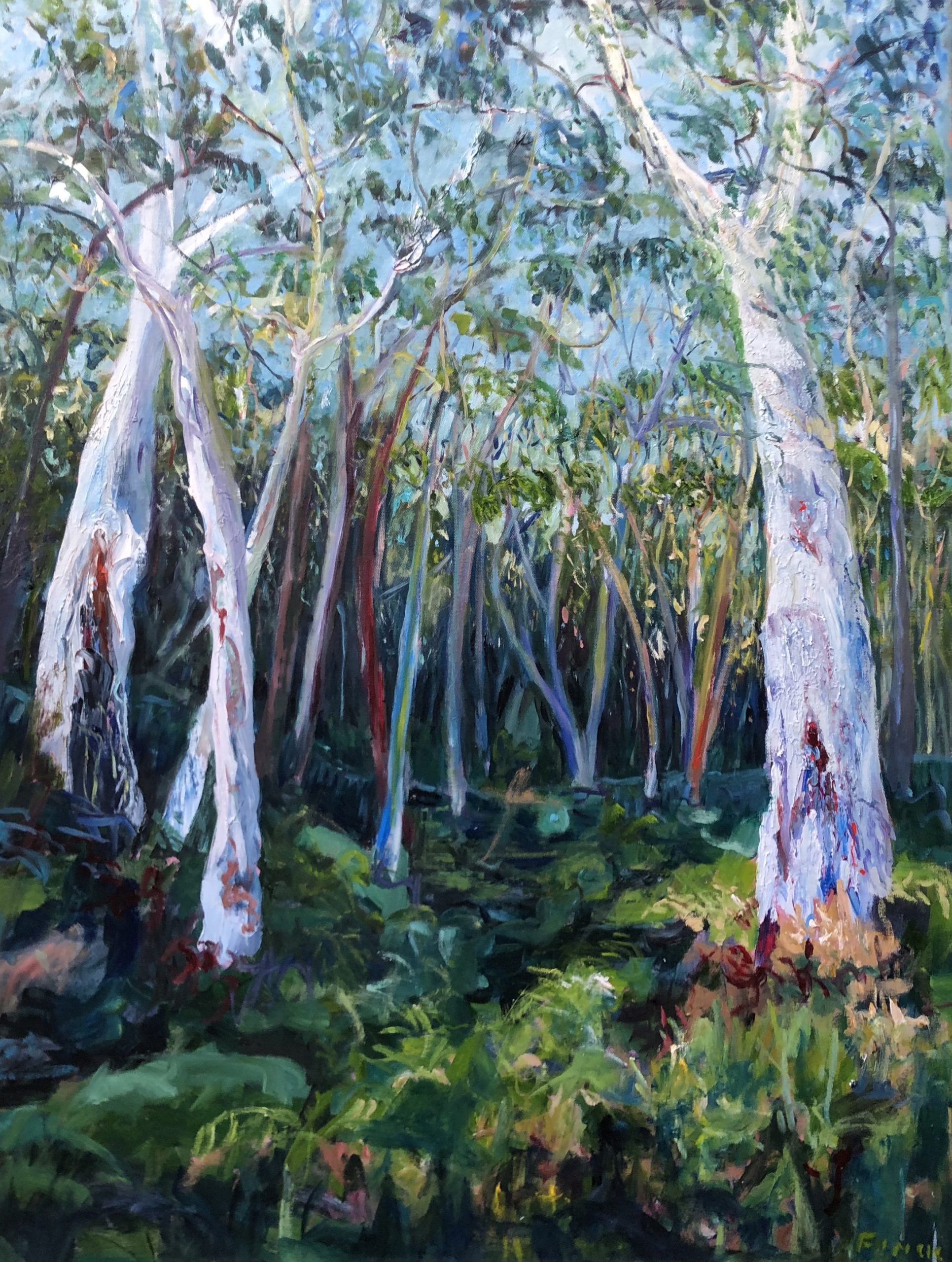 Eucalyptus, or gum trees are the quintessential Australian tree, and one of my favourite subjects to paint. Mainly because of their beautiful coloured bark and the twisted shapes of their trunks.