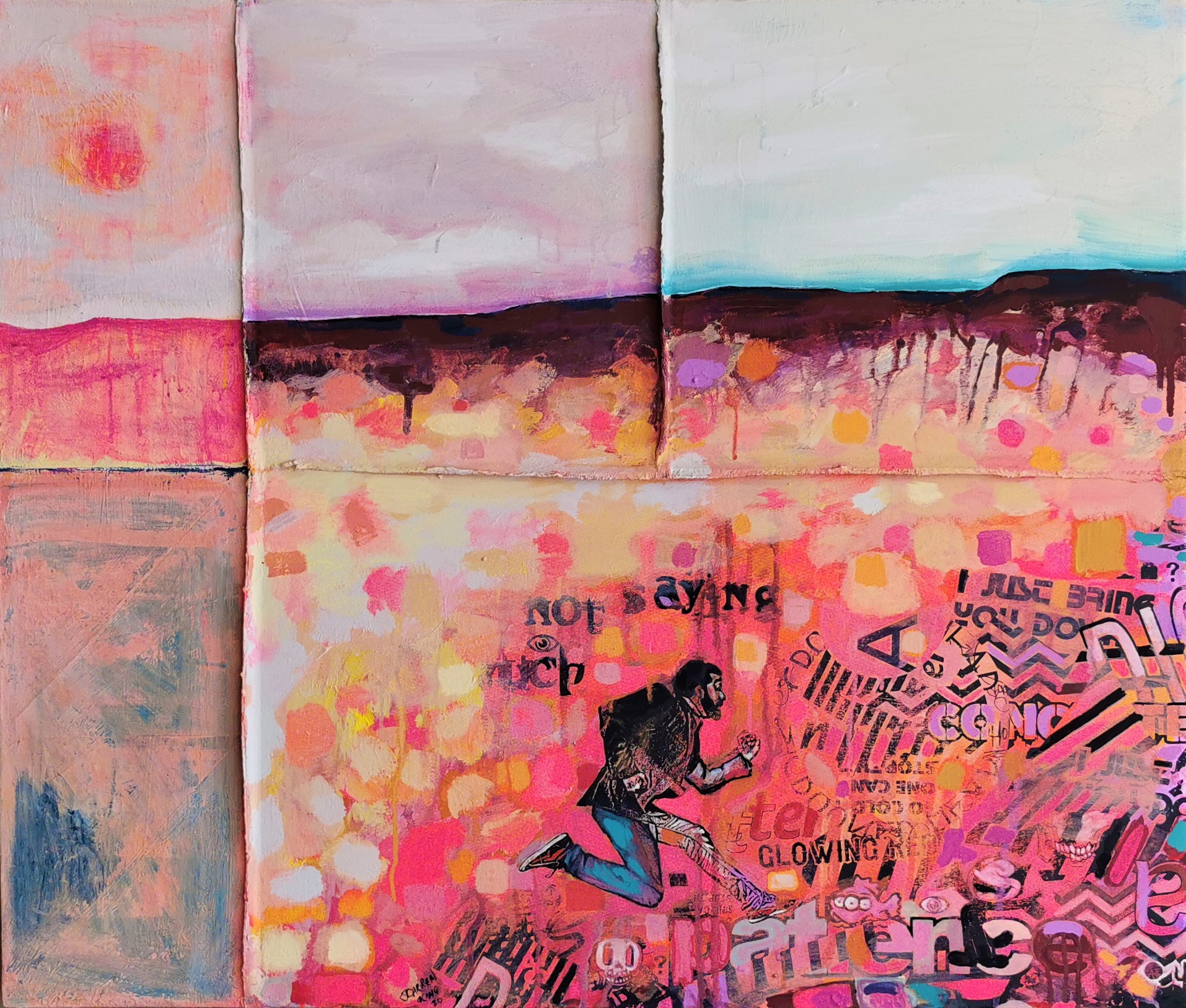 Lots of colour, layers, and loads of hidden details, some covered, some pushing through. Part pop, part expressionist, part landscape.