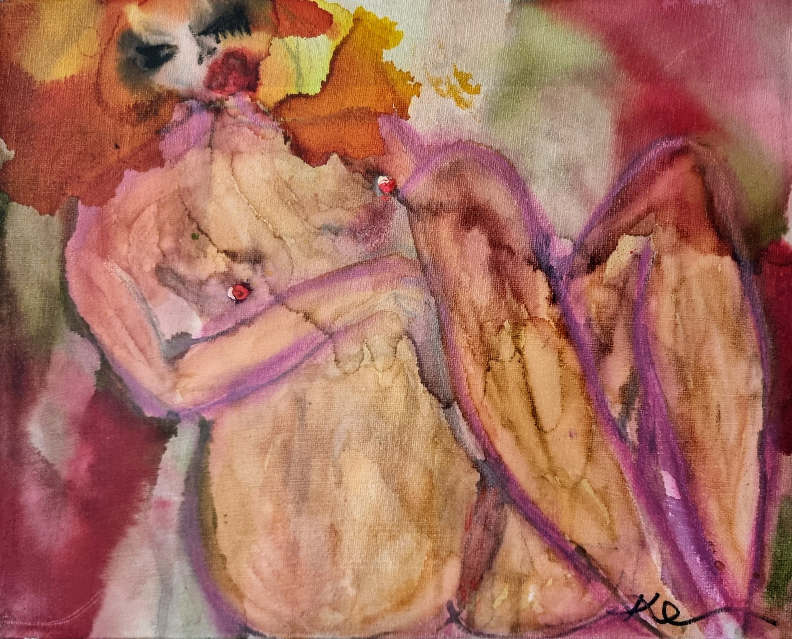 Another in my small for salon hang pieces. Loose and somewhat inspired by Egon Schiele
