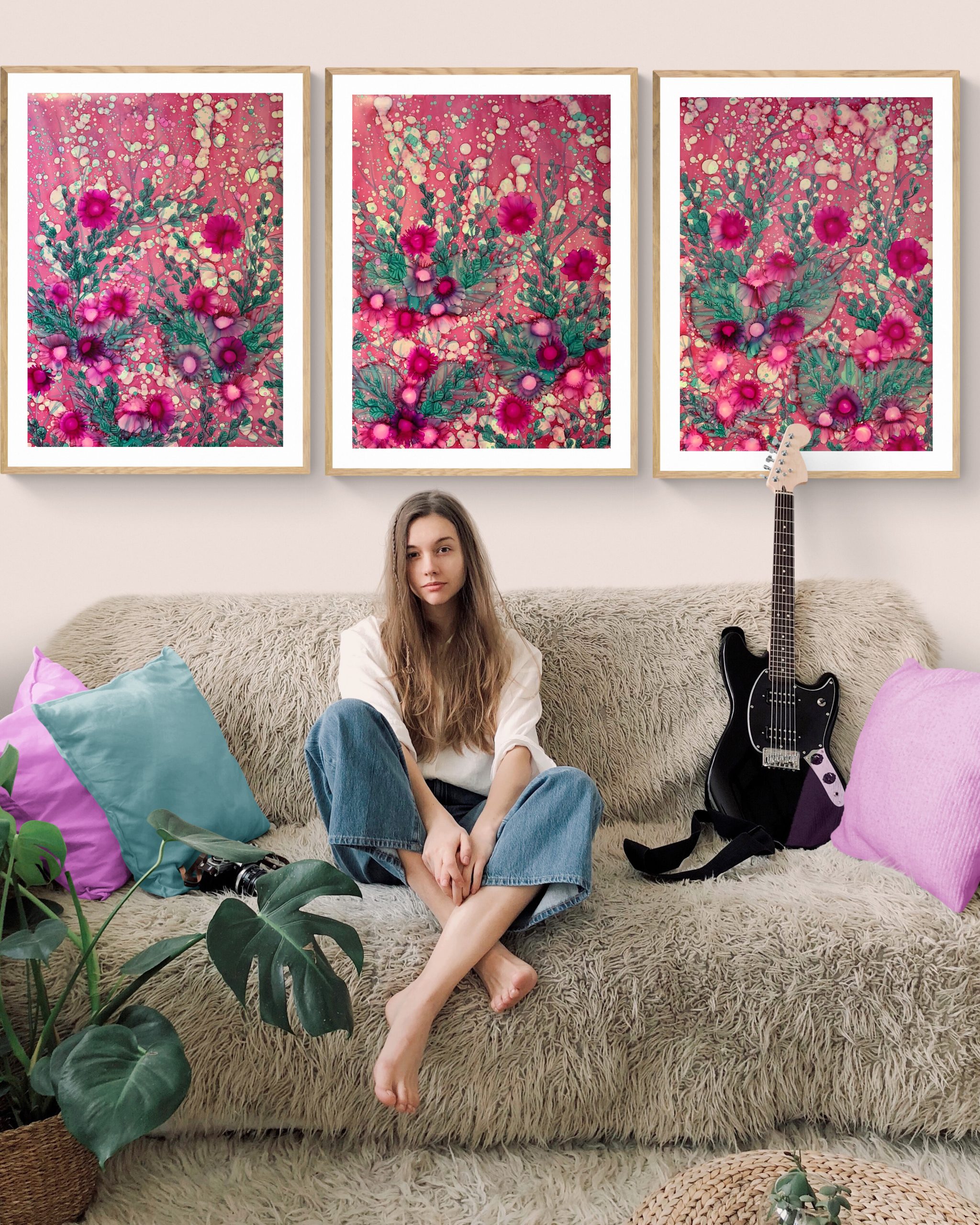 Original triptych 65 cm x 91 cm x 3 Alcohol ink on yupo paper sealed with high grade varnish and UV spray.