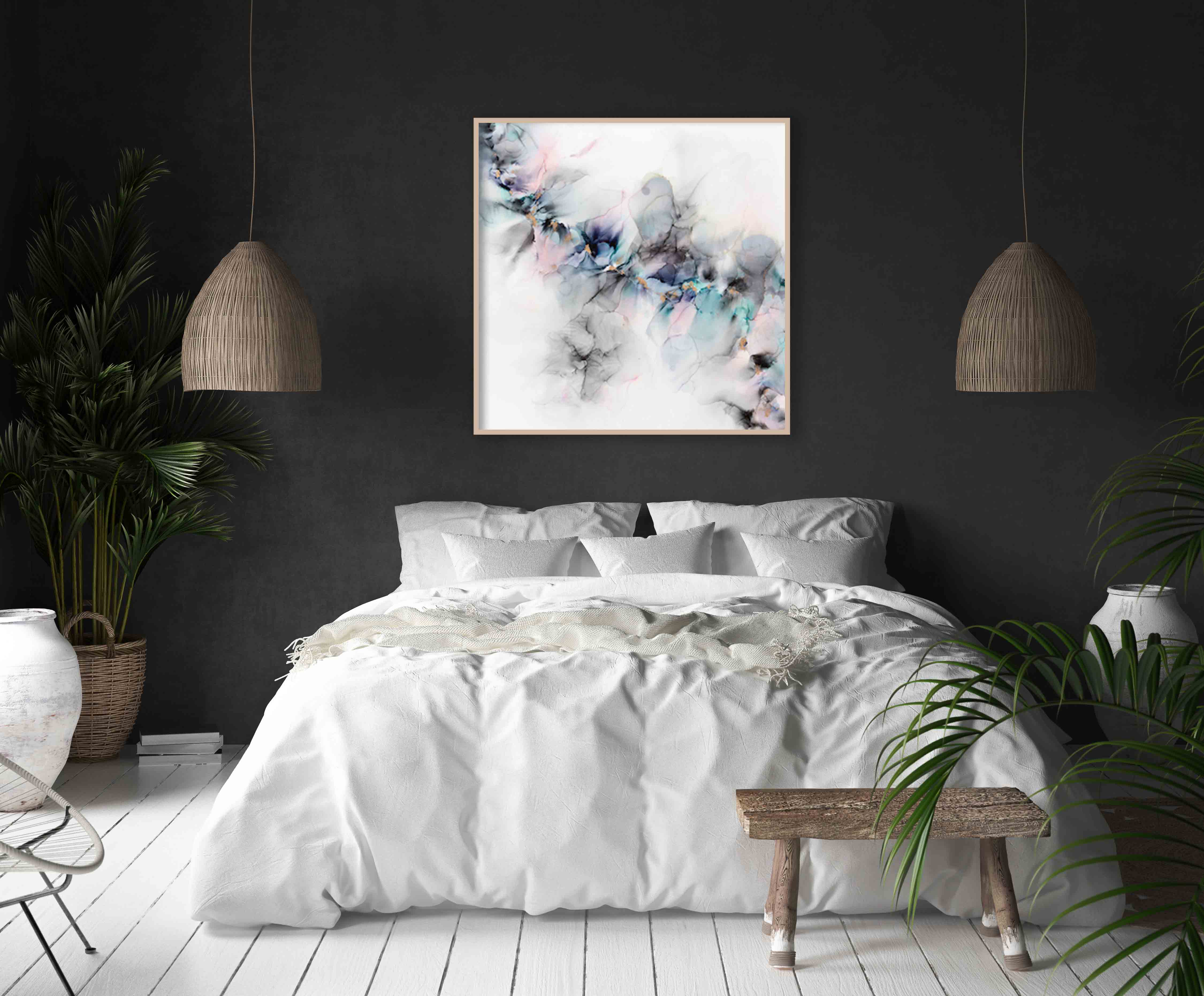 The medium used is alcohol dye ink on heavyweight Yupo synthetic paper. The original artwork is unframed and 95 x 95cm in size. Sealed with UV protective varnish ready for framing. Signed on front.