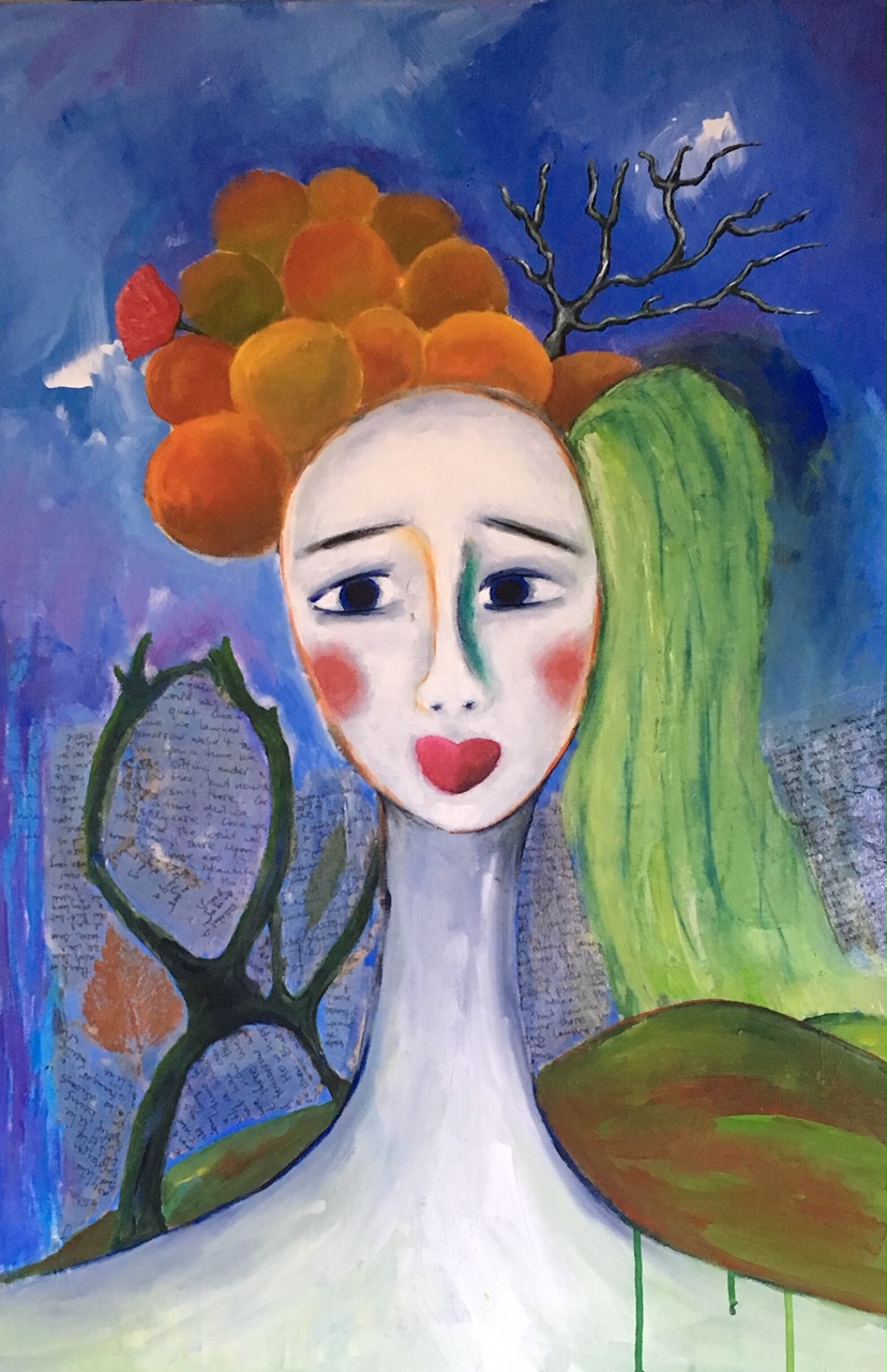 This artwork is as most of my works about the environment and what we are doing to it. Specifically about the trees been cut down left right and center here in our neighborhood and throughout in Australia. It’s not getting any better it is worse and through my art I try to create an awareness for these issues. Women play an important role as I believe they can change society and the way we think.