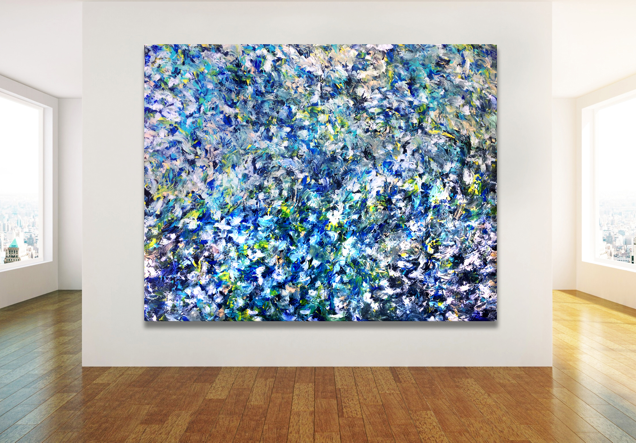 Number 70 – This work is purely emotional and explores the emotions of feeling completely happy and feeling purposeful. It is painted in the style of abstract expressionism. This work is painted on 12 oz gallery canvas and has been sealed with varnish. The canvas is hand-stretched onto a frame is 198 cm in width by 157 cm in height.