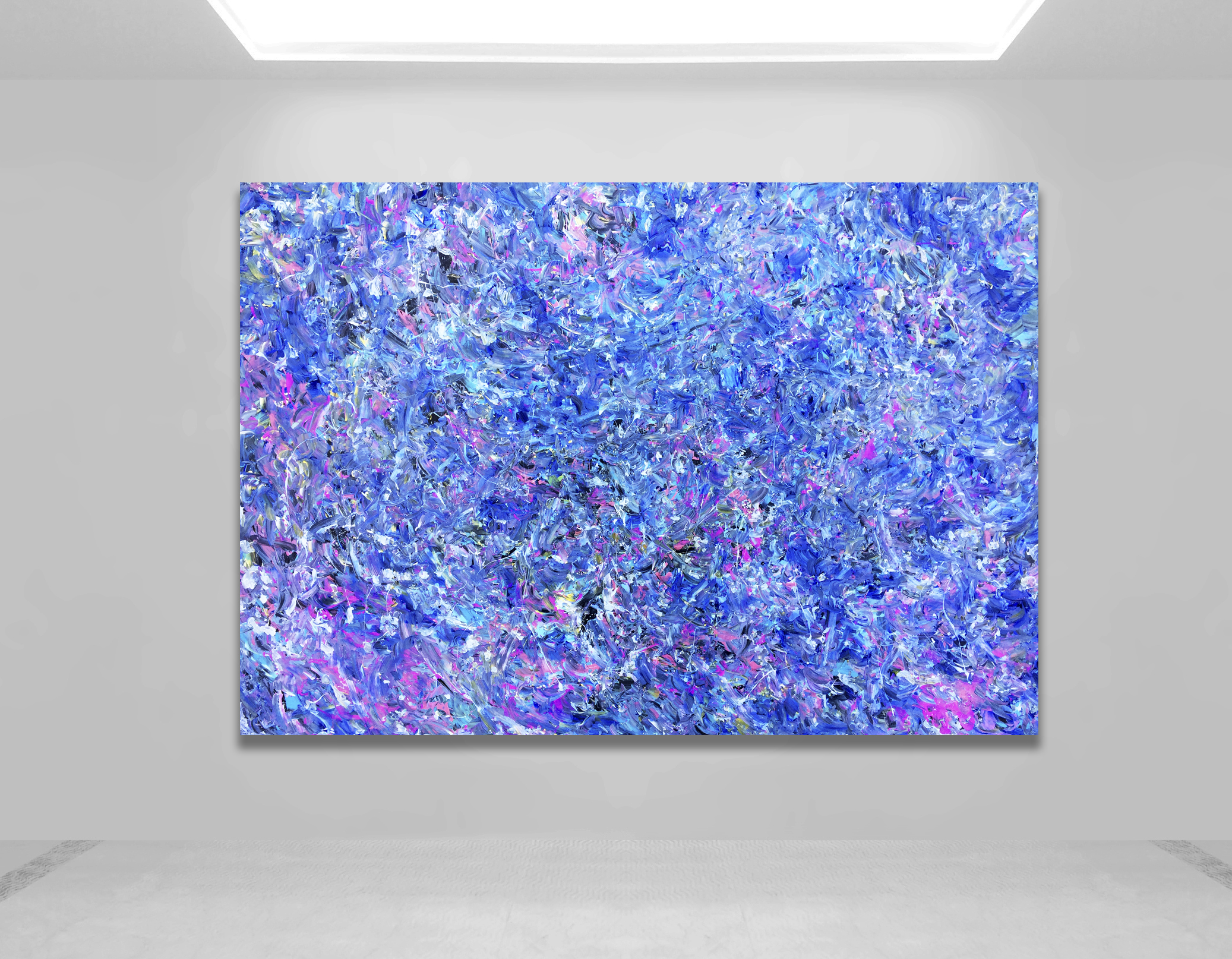 Number 71 – This work is painted on 12 oz gallery canvas and has been sealed with varnish. The canvas is hand-stretched onto a frame is 198 cm in width by 137 cm in height.