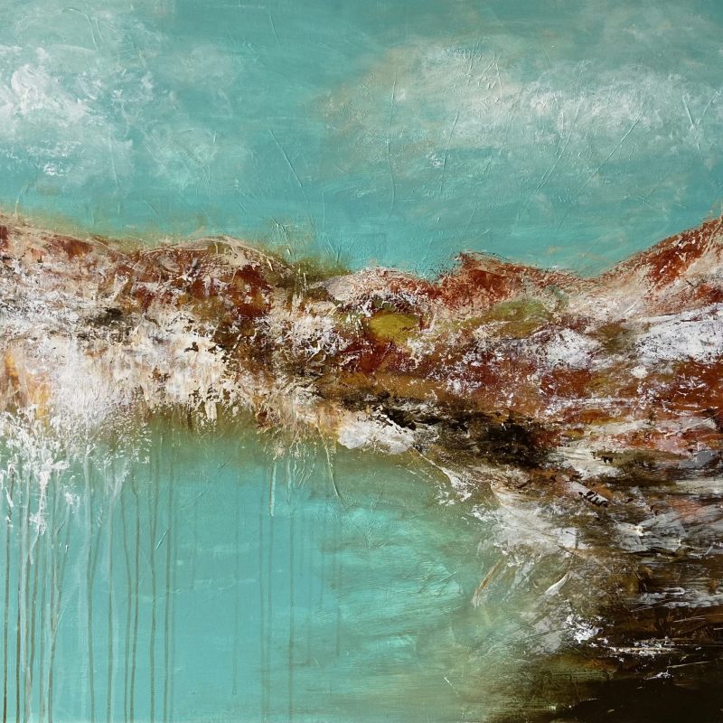 The power of the chemistry between these pigments carried by different mediums, attracting or repelling each other resulting in ocean and reef like formations. In addition to paint brushes, I use my hands, air guns, rods, blow torch, and gravity. Typically working in large formats, I “sculpt” my paintings, starting with a board upon which I layer various materials. Inspired by the waters of the Great Barrier Reef, very close to where I am lucky enough to live.