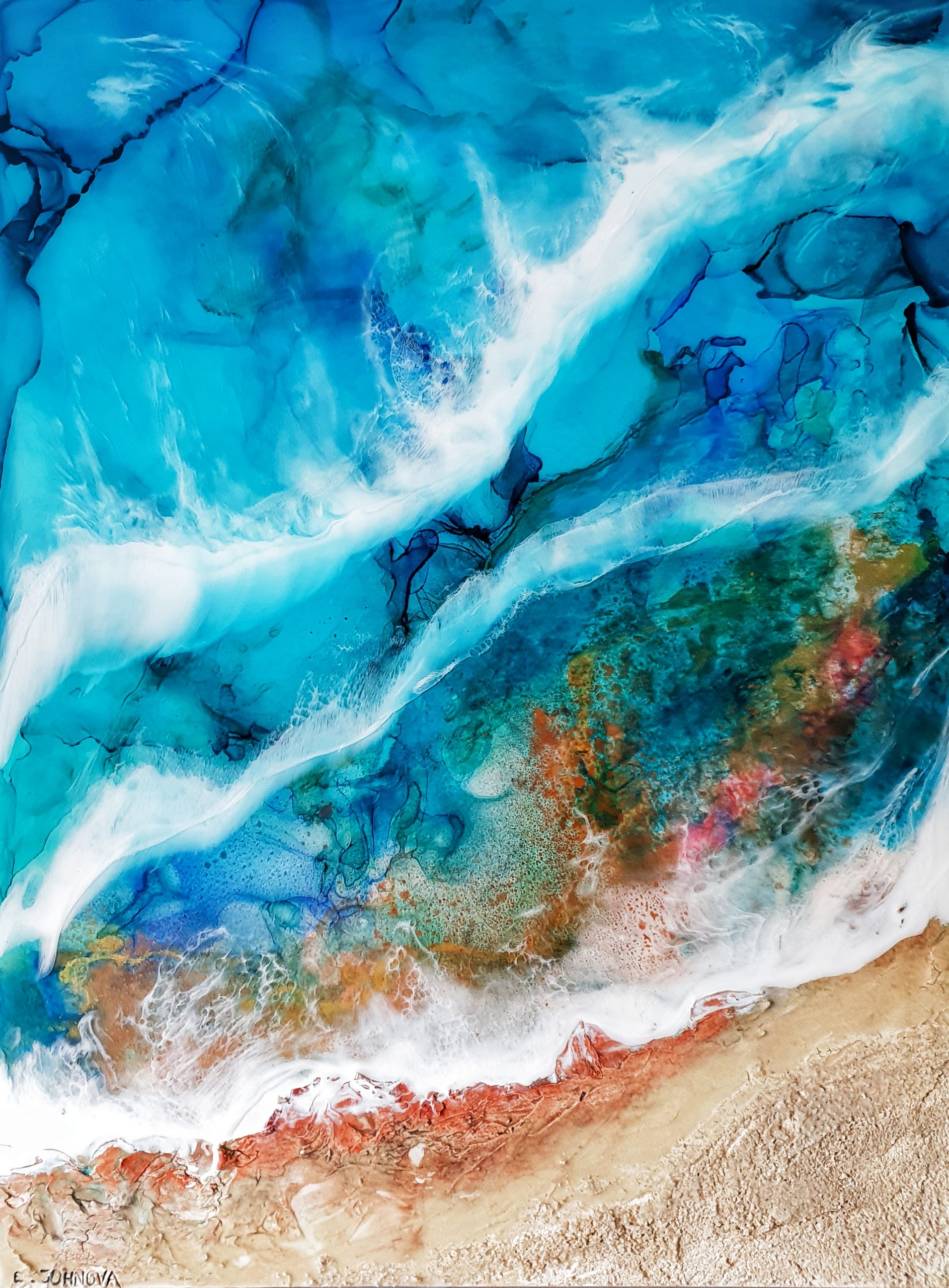 An original abstract artwork showcasing the beauty of the ocean water and crashing waves.