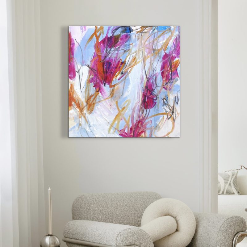 Quality acrylics used giving long lasting rich pigmentation/lustre. Designed on acid free environmentally unbleached cotton duck, triple coated with universal primer, gallery style folded corners, heavy duty stretcher bars to reduce warping. Protective Matte Varnish applied.