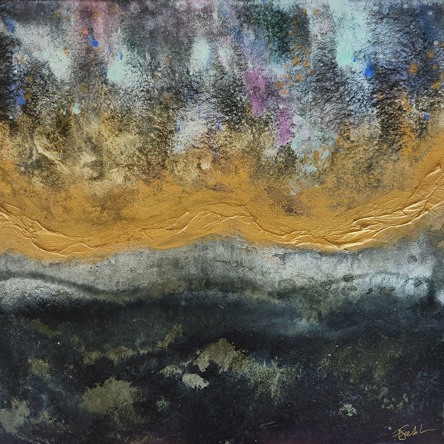 Original artwork on canvas with many layers and a final layer of textured gold.