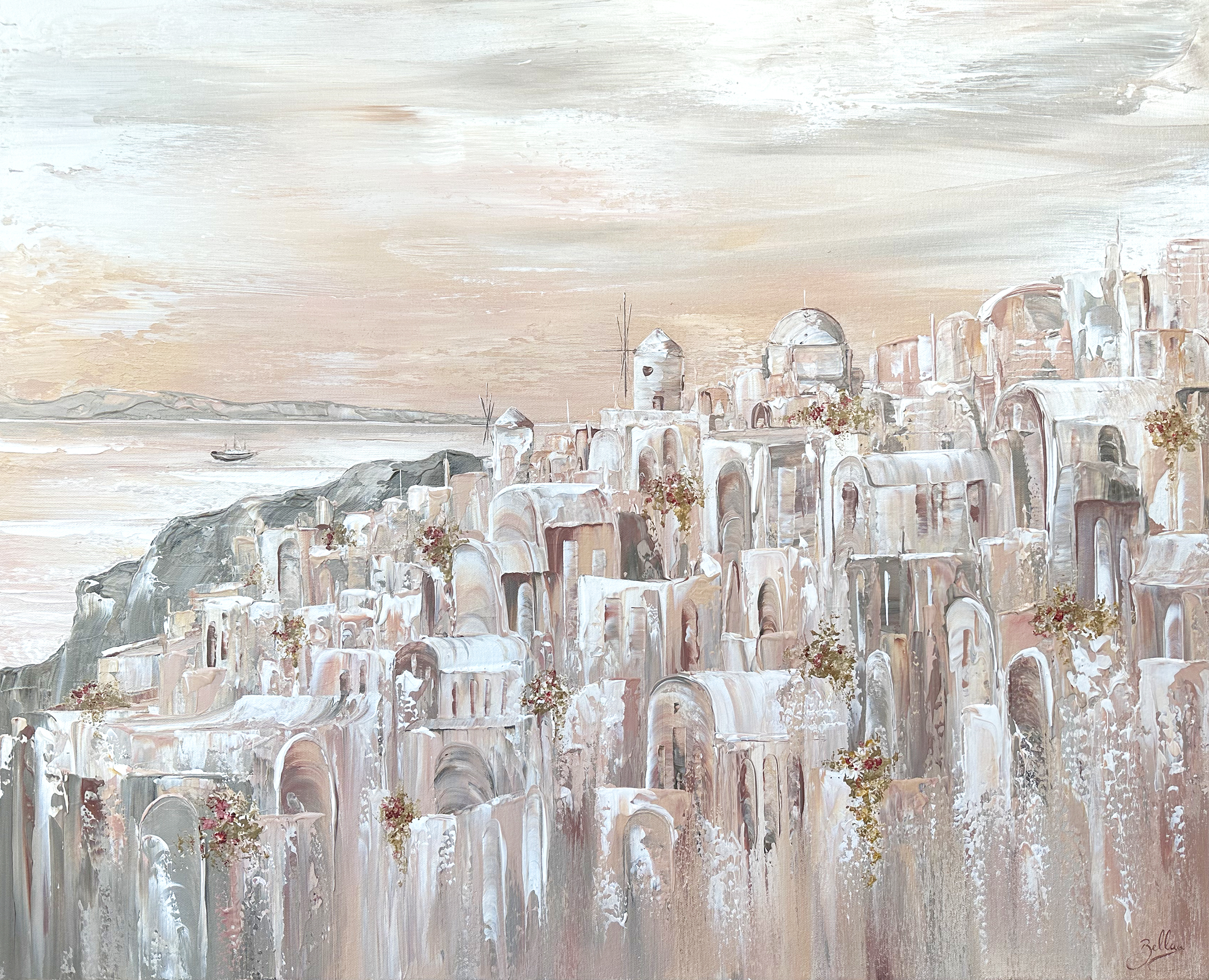 ‘Oia Sunset Dreams’ A modern original painting by Isabella Karolewicz – stretched and ready to hang.