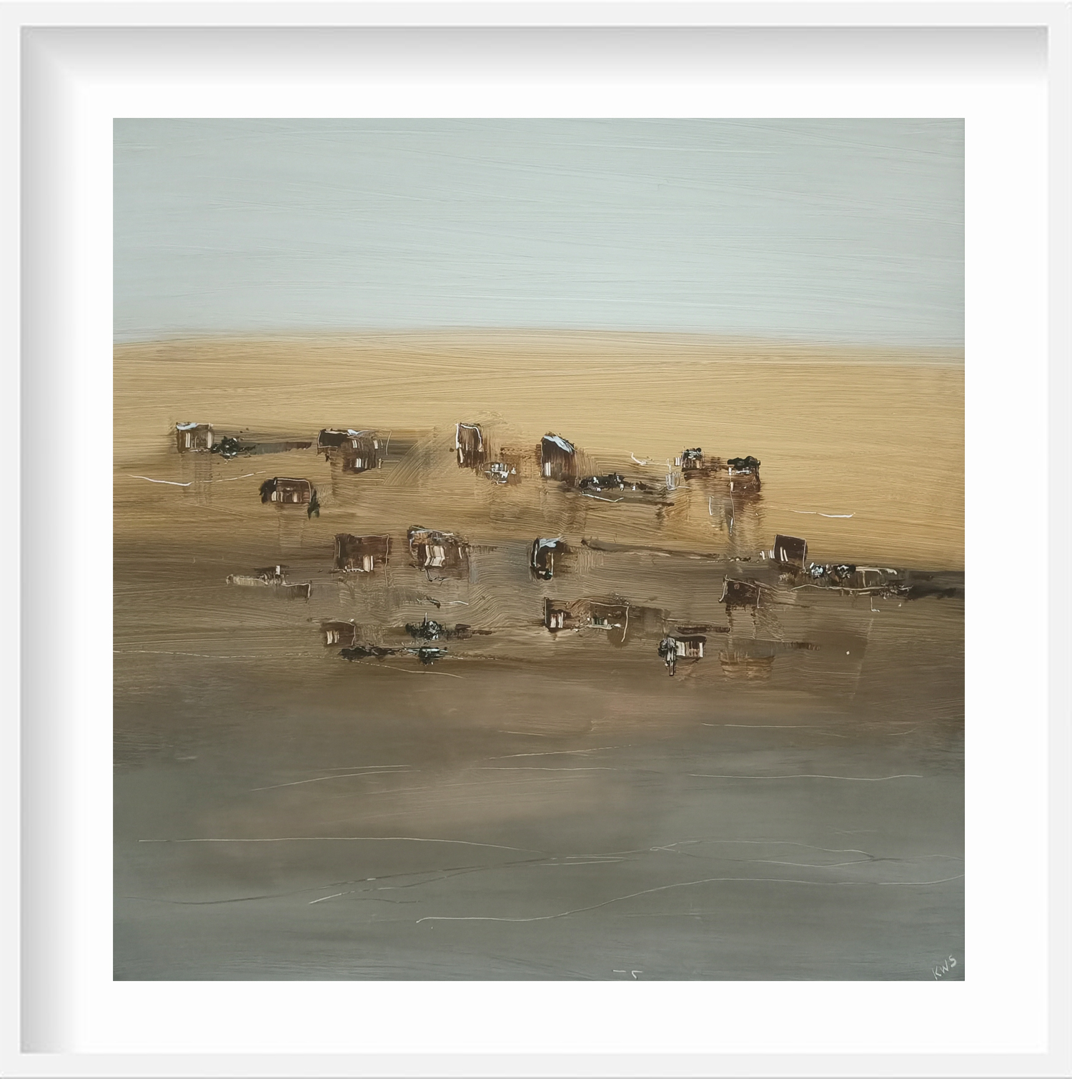 Semi Abstract Landscape.Inspired by Australia’s mining pioneers who lived a very harsh life in pursuit of fame and fortune. This semi abstract painting depicts an old abandoned mining camp in outback Australia.