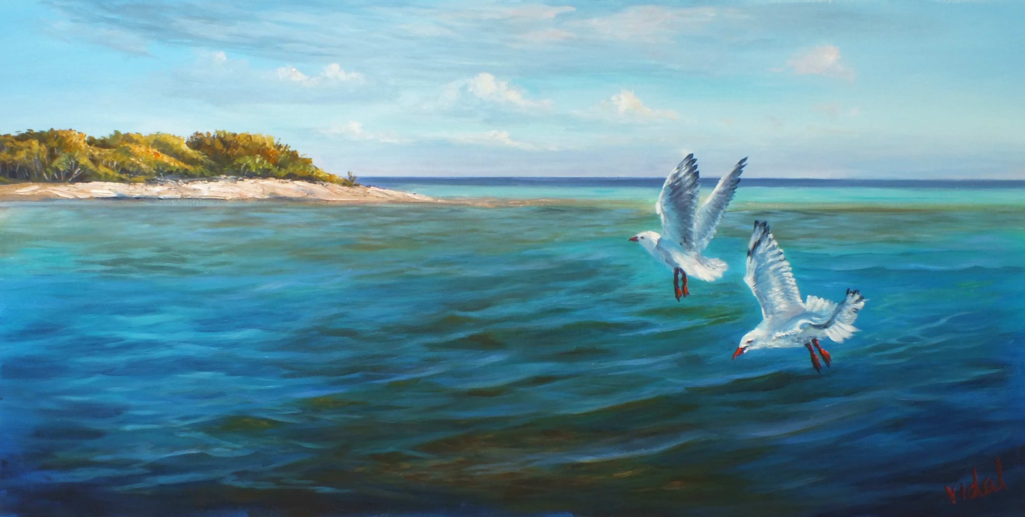 Original painting showing seagulls near Lady Musgrave Island at the lower Great Barrier Reef.