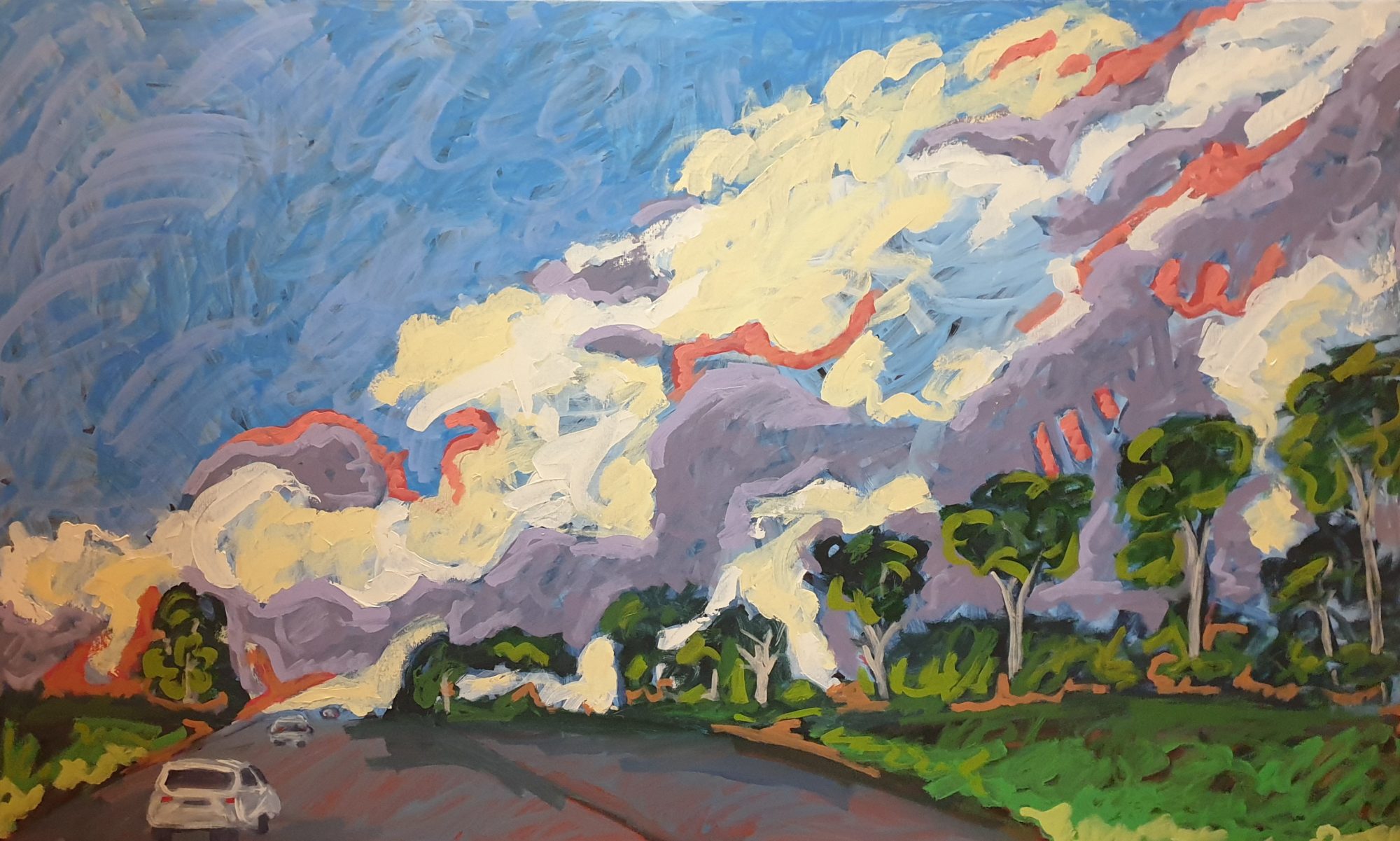 On the Way Out is a painting about hope and a nod to the future. We are in Lockdown number 5 in Victoria and getting very close to donut days! I remember so well our recent trip to Gippsland, my face pressed against the glass looking out. The vast expanse of this beautiful country opened up to us. The sky is magic, alive. The future is out there and it will get better!