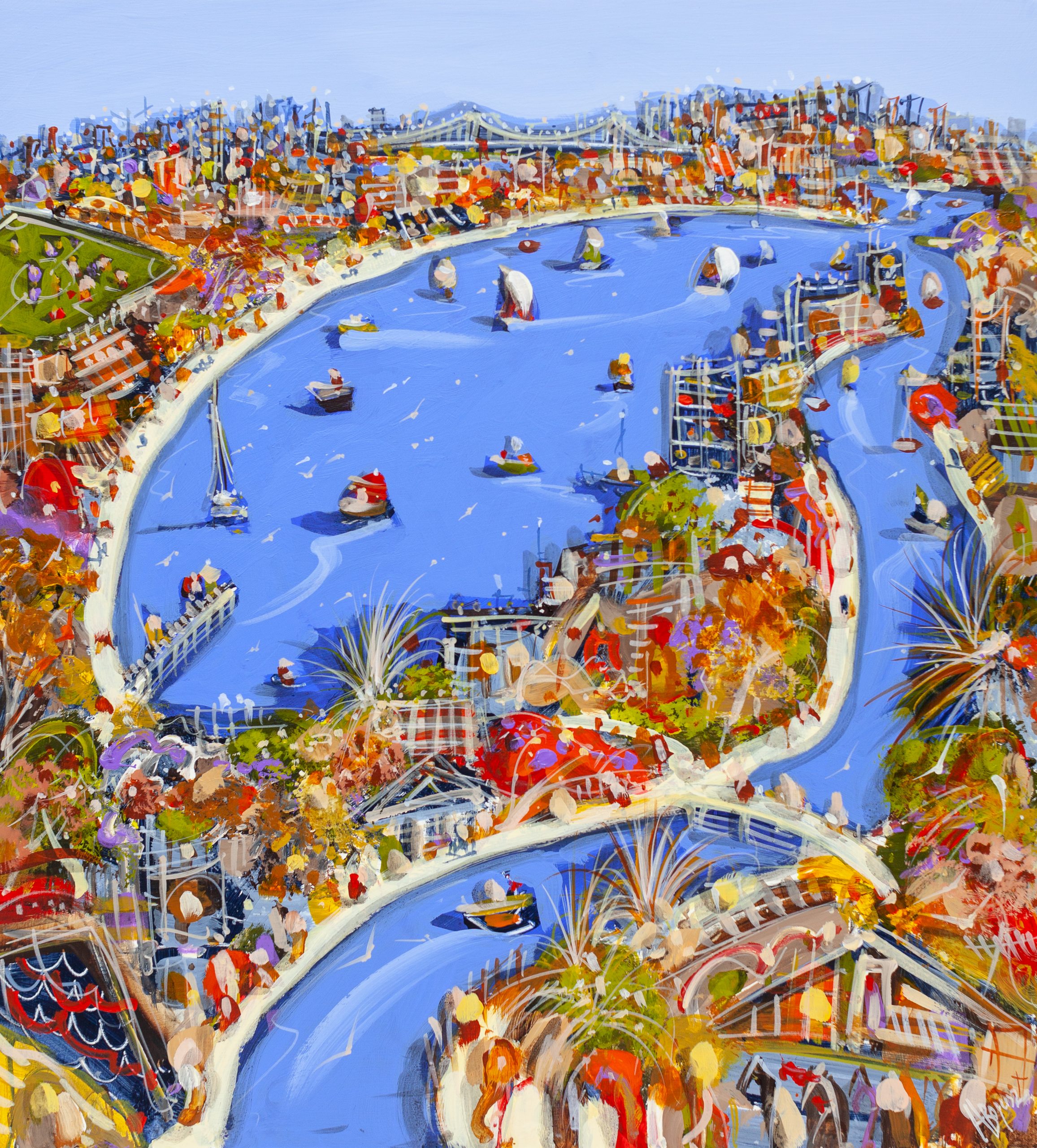 Inspired my hometown of Brisbane but with my own twist. Blues skies and everyone out and about!