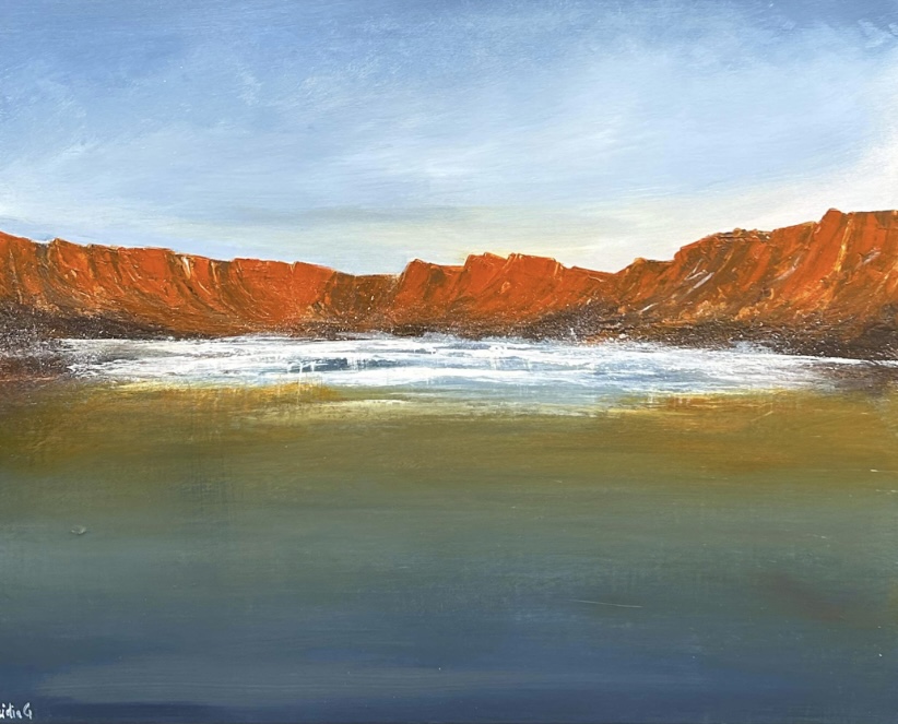 Inspired by the incredible diversity of the Australian landscape from its rugged coastlines, snow-capped mountains and the idiosyncratic landscape of the sandy desert with its sun baked monoliths and rainforests. The edges of the painting are painted in Lamp black and comes with professional wire hanger and a Certificate of Authenticity.