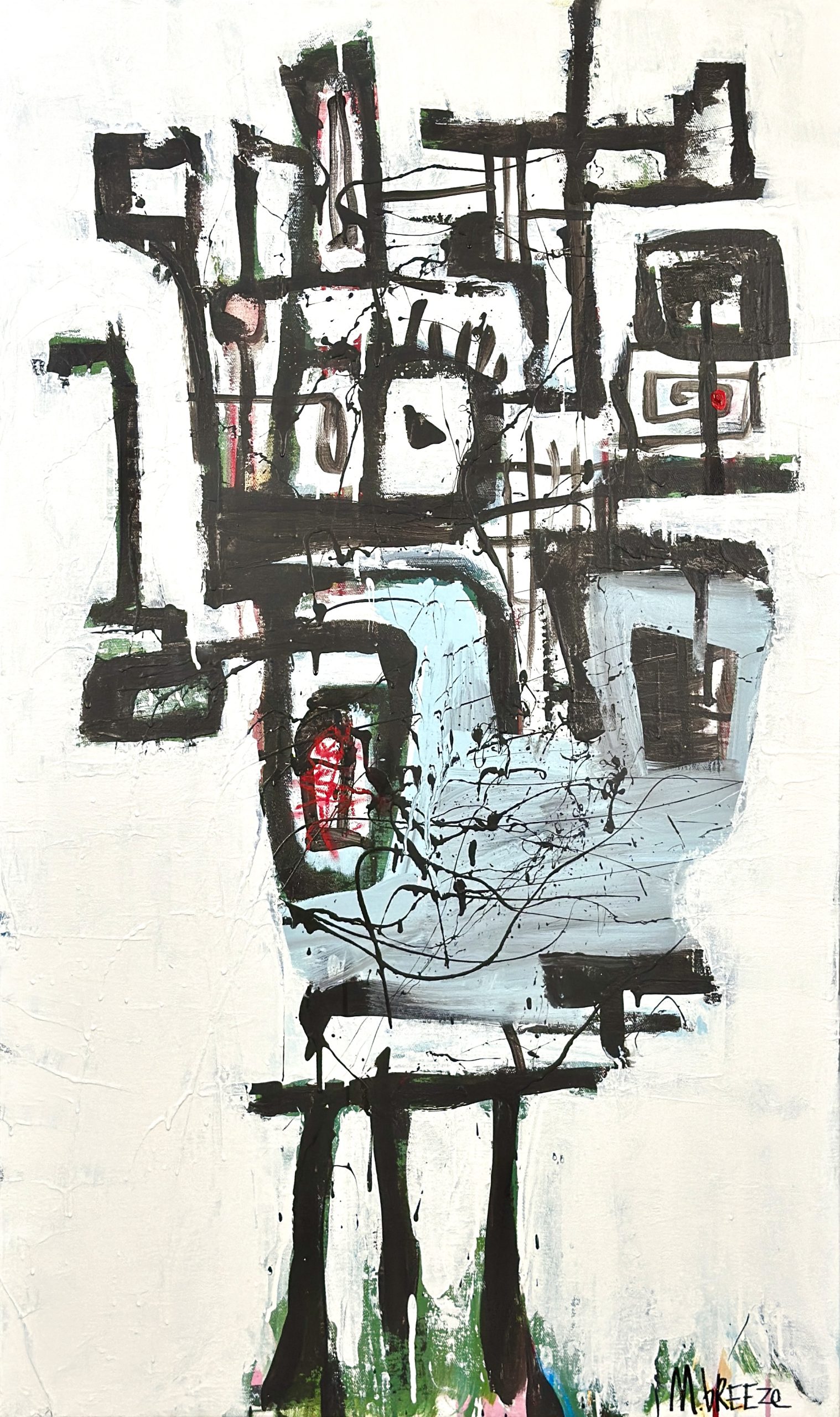 Original artwork using acrylic paints applied with trowel, hands and brush on to stretched canvas