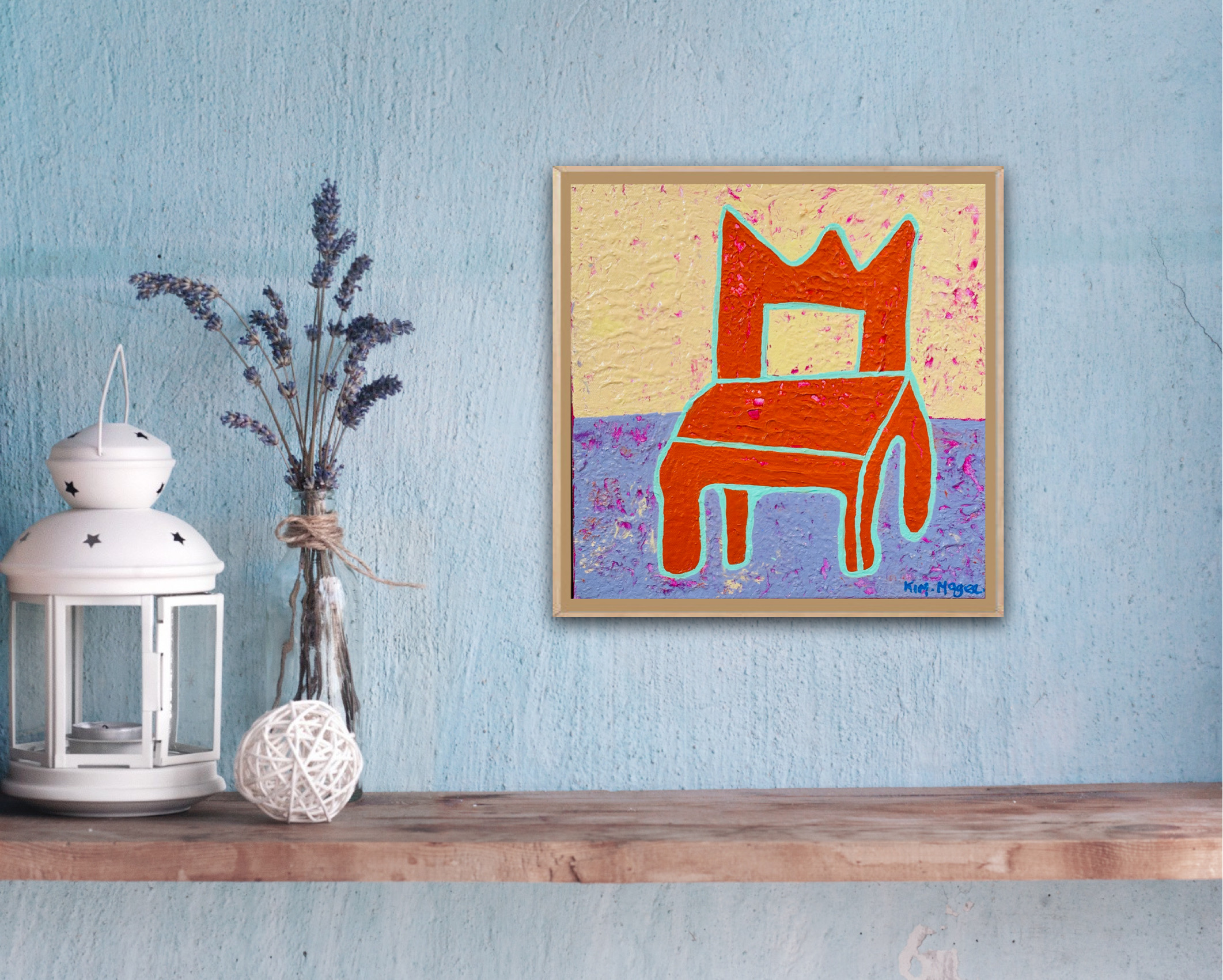 Orange Chair is an original artwork by Australian artist Kim Magee, featuring a playful chair in a vibrant palette of bright pastels. Rich in texture and personality, this acrylic painting is created in a naive, whimsical style and finished with a subtle gloss.