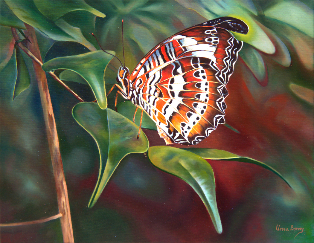 Orange Lacewing Butterfly by Uma Barry – Hi everyone, here is a special piece, a butterfly with a slightly broken wing but still in very high spirits enjoying nature. I gathered this reference material when I visited the Butterfly Enclosure of Melbourne Zoo. I was deeply drawn to it’s beautiful colors, shapes and patterns. I hope you enjoy it as much as I enjoyed painting it. It comes with a wire backing and a certificate of authenticity, all ready for your wall. Thank you so much viewing and supporting my artwork, I dearly appreciate it. ❤️❤️