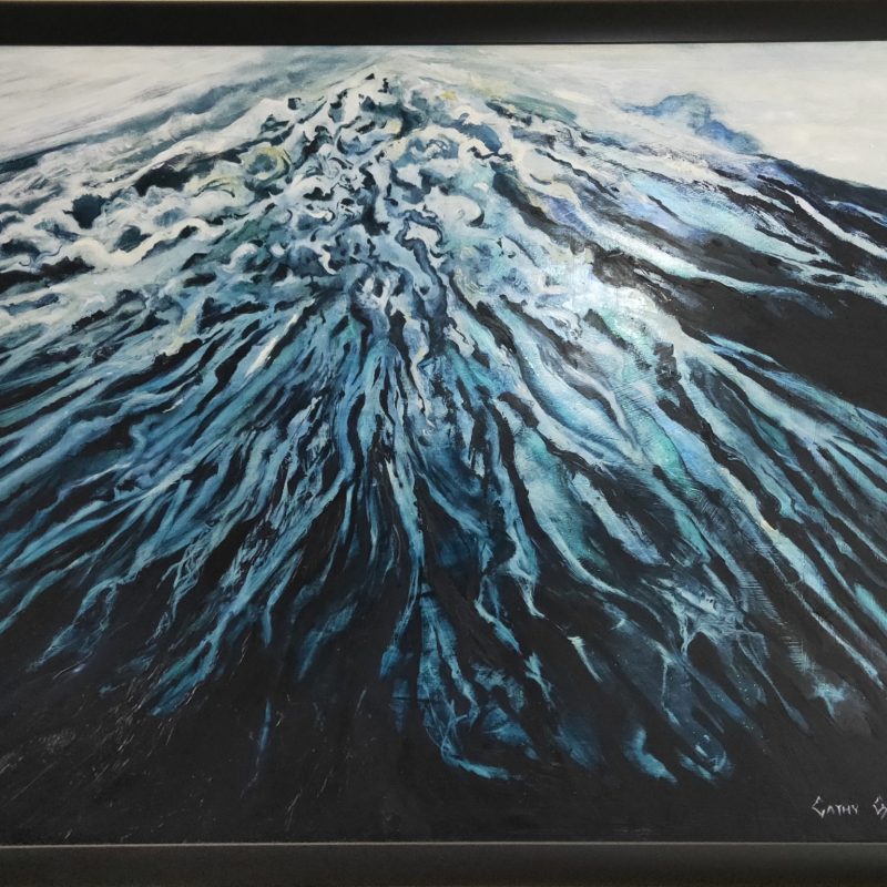 The artist’s expressive brushwork and vibrant palette bring energy and comfort together, allowing everyday objects—cushions, ceramics, flowers, and woven textures—to feel relaxed and inviting. A framed landscape and arched window subtly extend the space outward, balancing interior intimacy with a sense of openness.