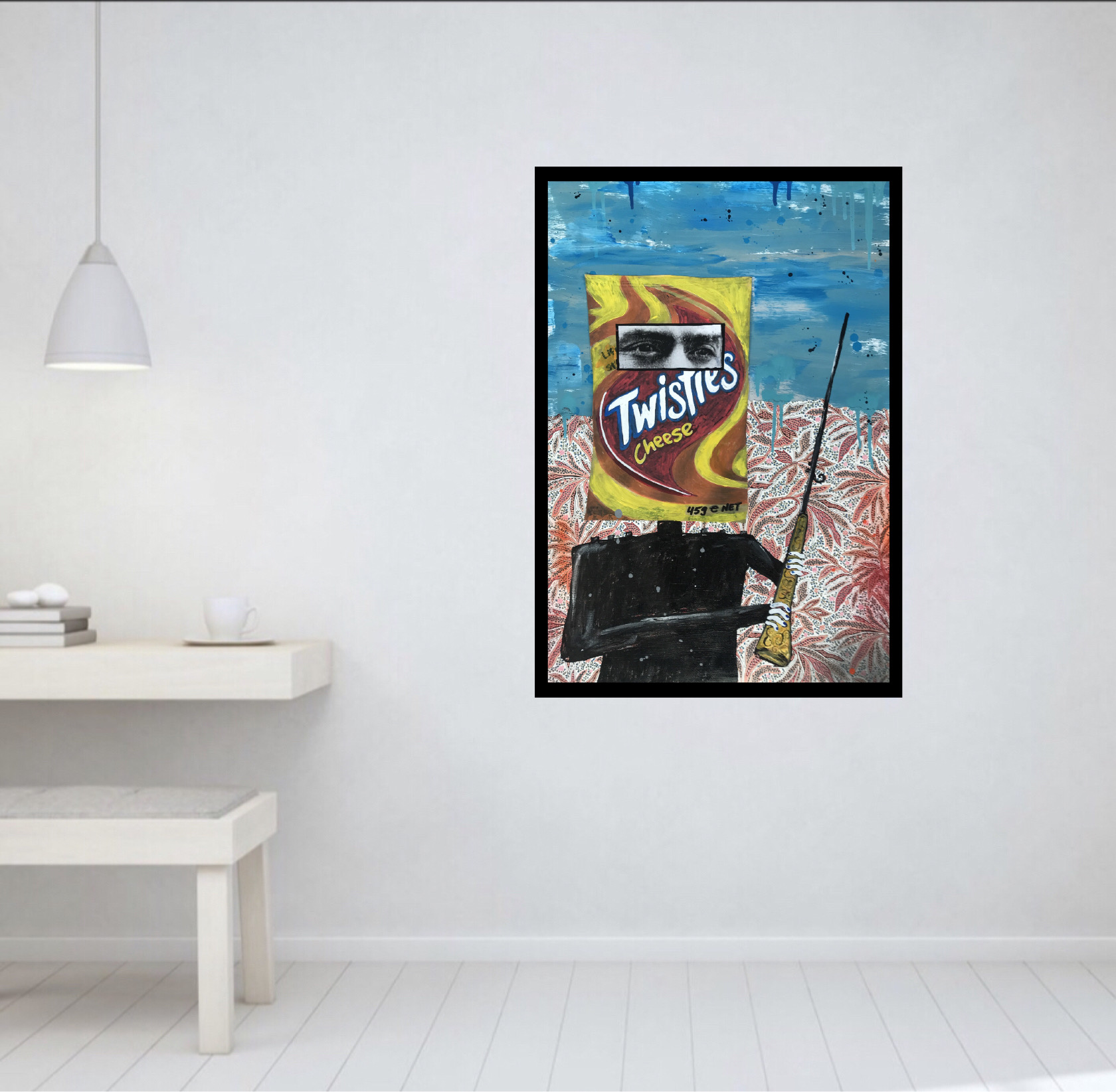 The work continues my pandemic pop series and is a riff on the Sidney Nolan iconic Ned Kelly, the original Aussie Mask wearer.