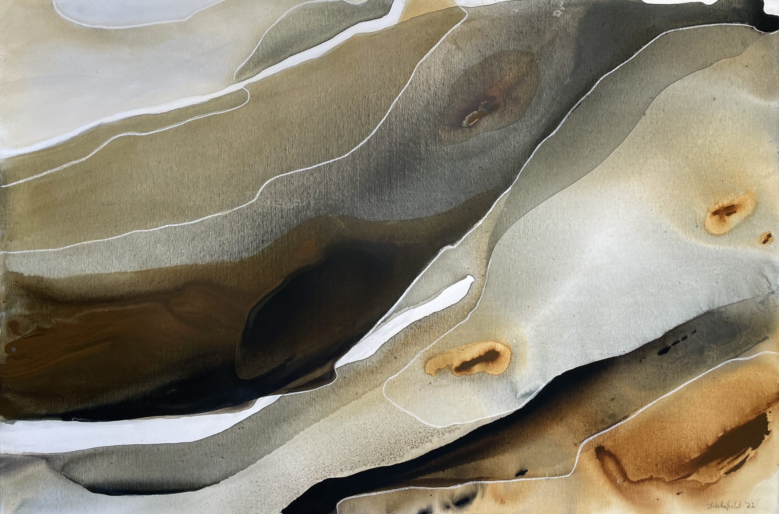Otago by Dinah Wakefield is inspired by the light, the colours and the natural beauty of the Noosa region of Australia. “What I love most about Noosa is the interplay of light. From the oceans to the clouds, to the river estuaries and the hinterland, this canvas unfolds before me every day and finds expression in my paintings”.