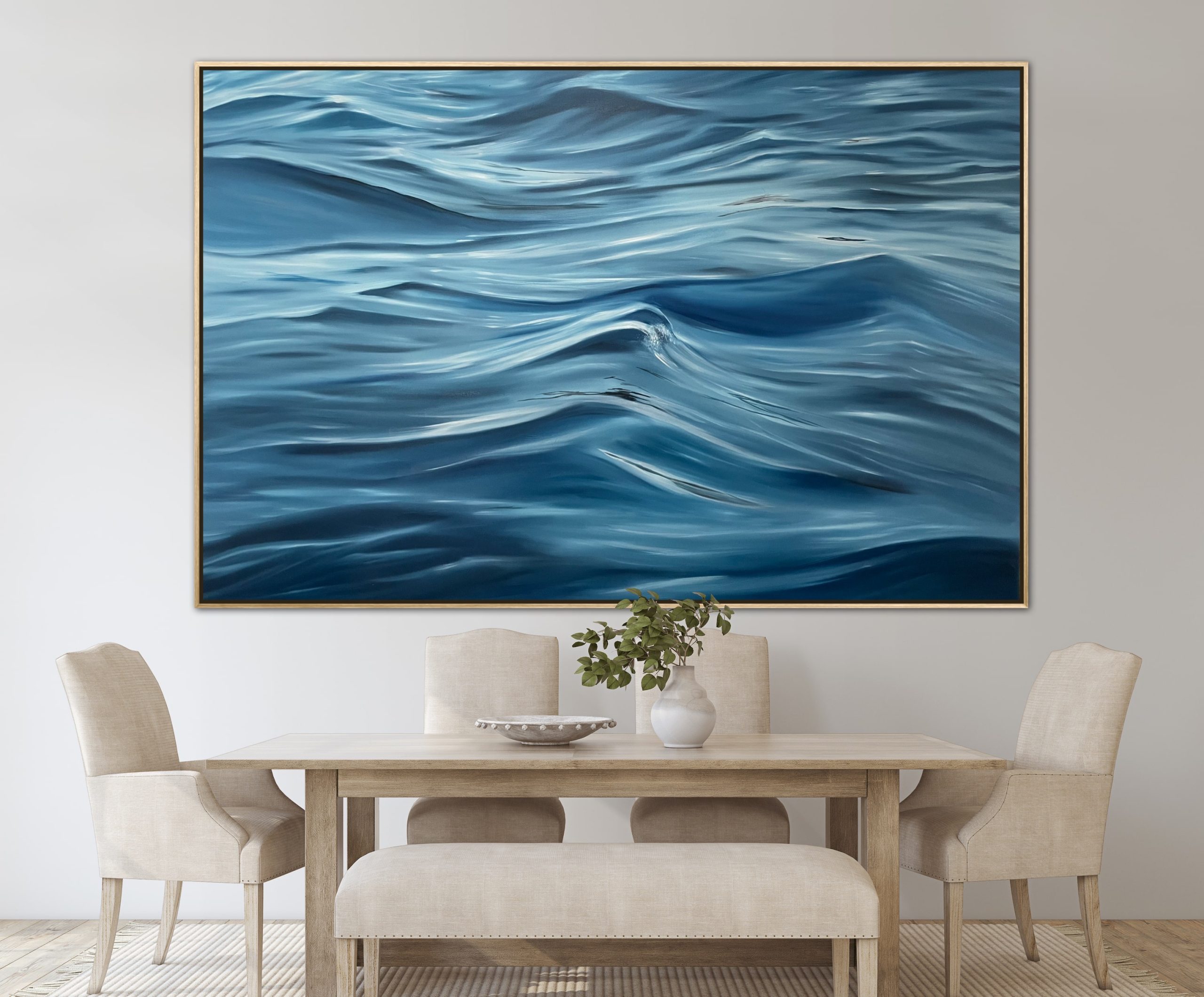 Allow this painting to create the illusion of more space in a room by pushing a wall away, or be a subtle feature in a large room. The edges of the canvas have been painted to ensure no exposed canvas is seen, the photos shows a frame so the viewer can see how this would look.