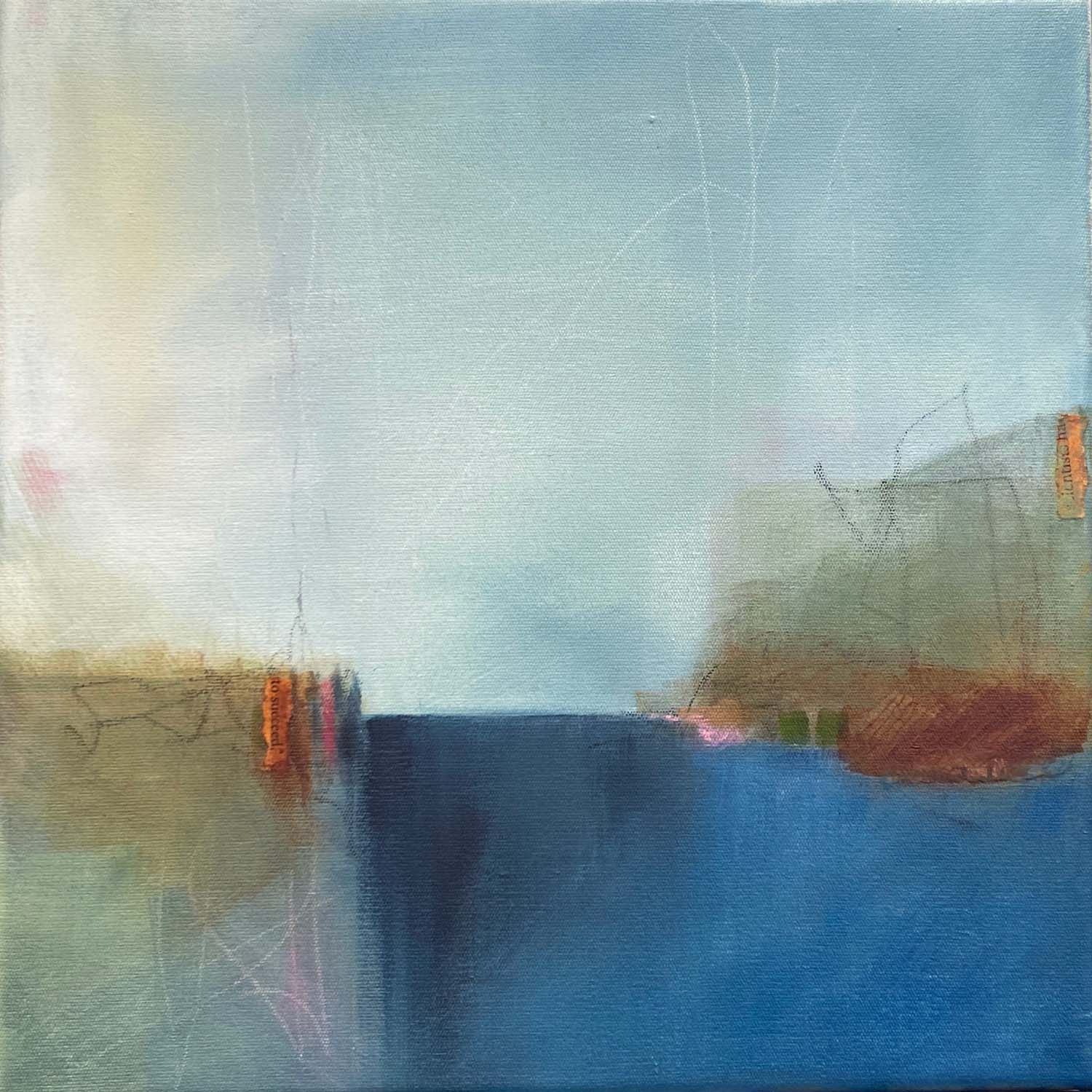 Out to sea by Narelle Callen is a small painting on canvas inspired by the landforms and bay. Â With its clear light and transparent colour, it will captivate you and take you out to sea.