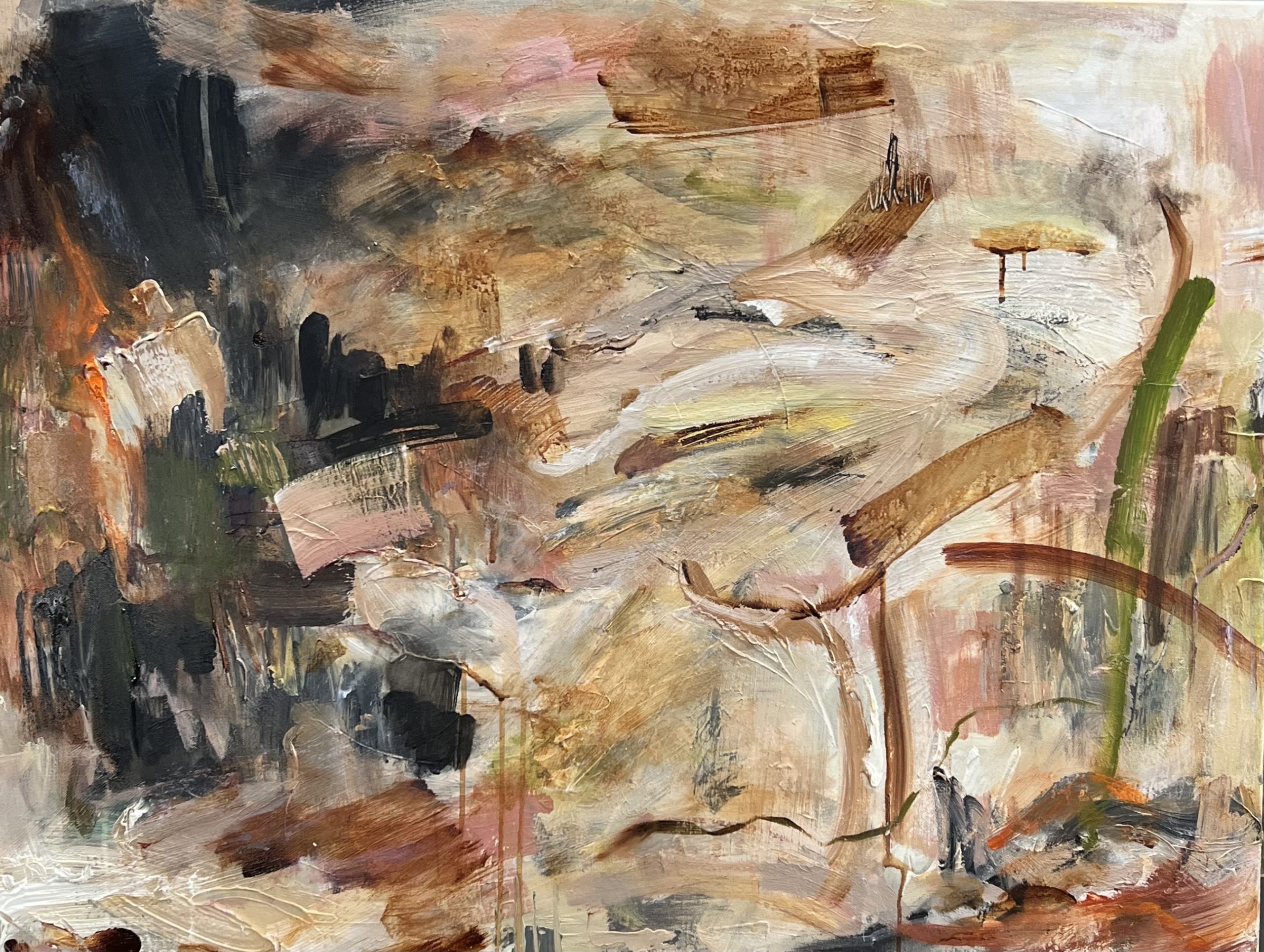 With expressive strokes and rich texture, this abstract piece reflects the contrast between strength and fragility—the weathered ground, shifting skies, and hardy flora that thrive despite the elements. The layered acrylics create a sense of movement, mirroring the land’s ever-changing story, shaped by time and nature.