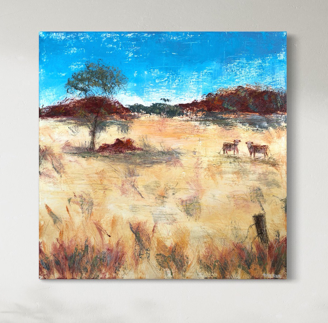 ‘Outback cows’ by Australian artist Peter Taylor. Â Outback cows is an abstract impressionist artwork depicting the rich colour palette of the Australian outback