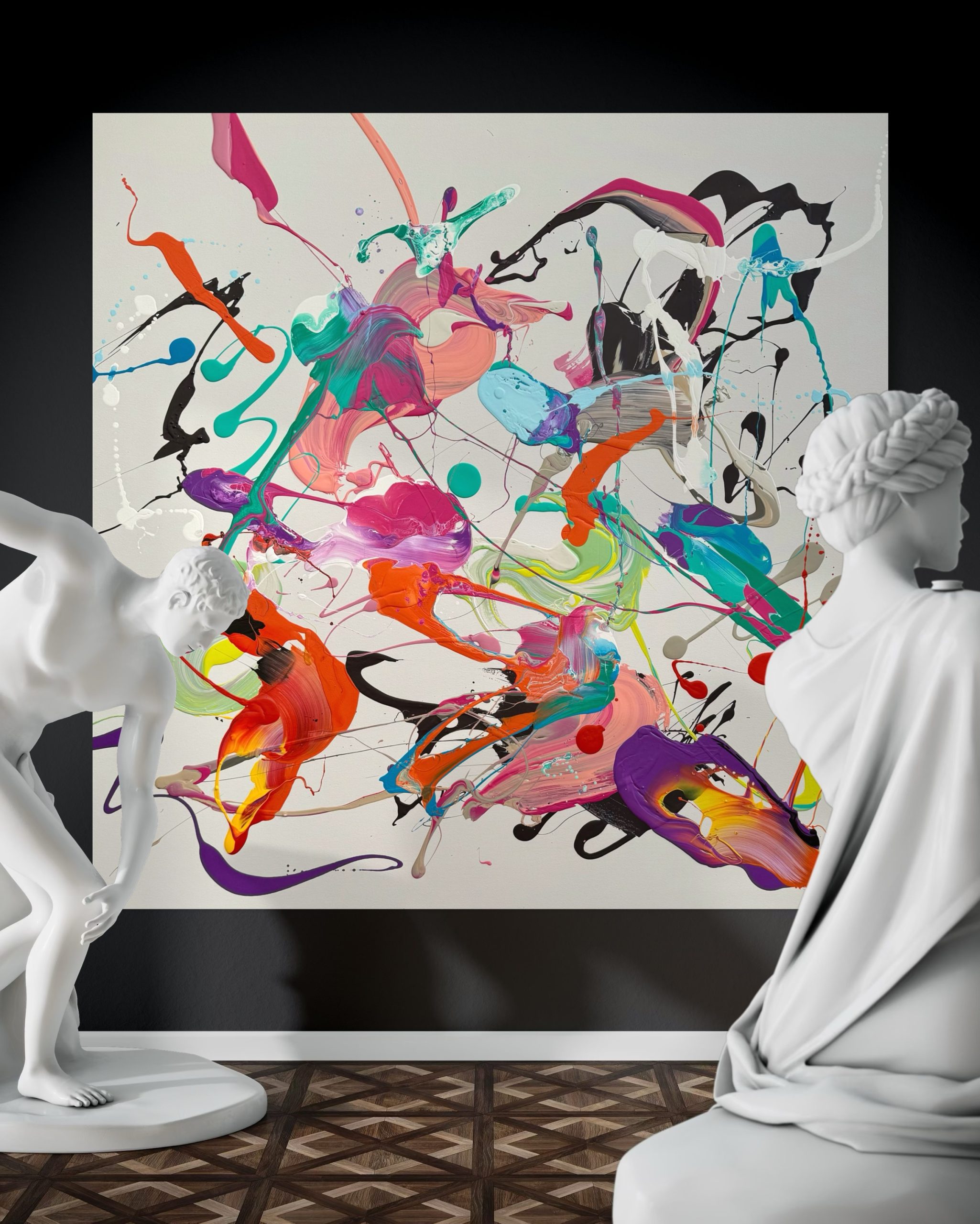 Another edition from my popular collection “Narratives” a series of paintings that are carefully arranged by showcasing organic shapes and textures that orchestrate a narrative of conflict and harmony, fragments of contrasting colours created through blending brushstrokes, abstract signatures and sculptural like curves.