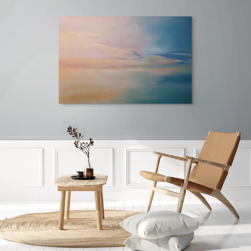 This artwork comes framed in Australian oak float frame, ready to hang. The framed size of the work is 63cm x 63cm x 5.5cm