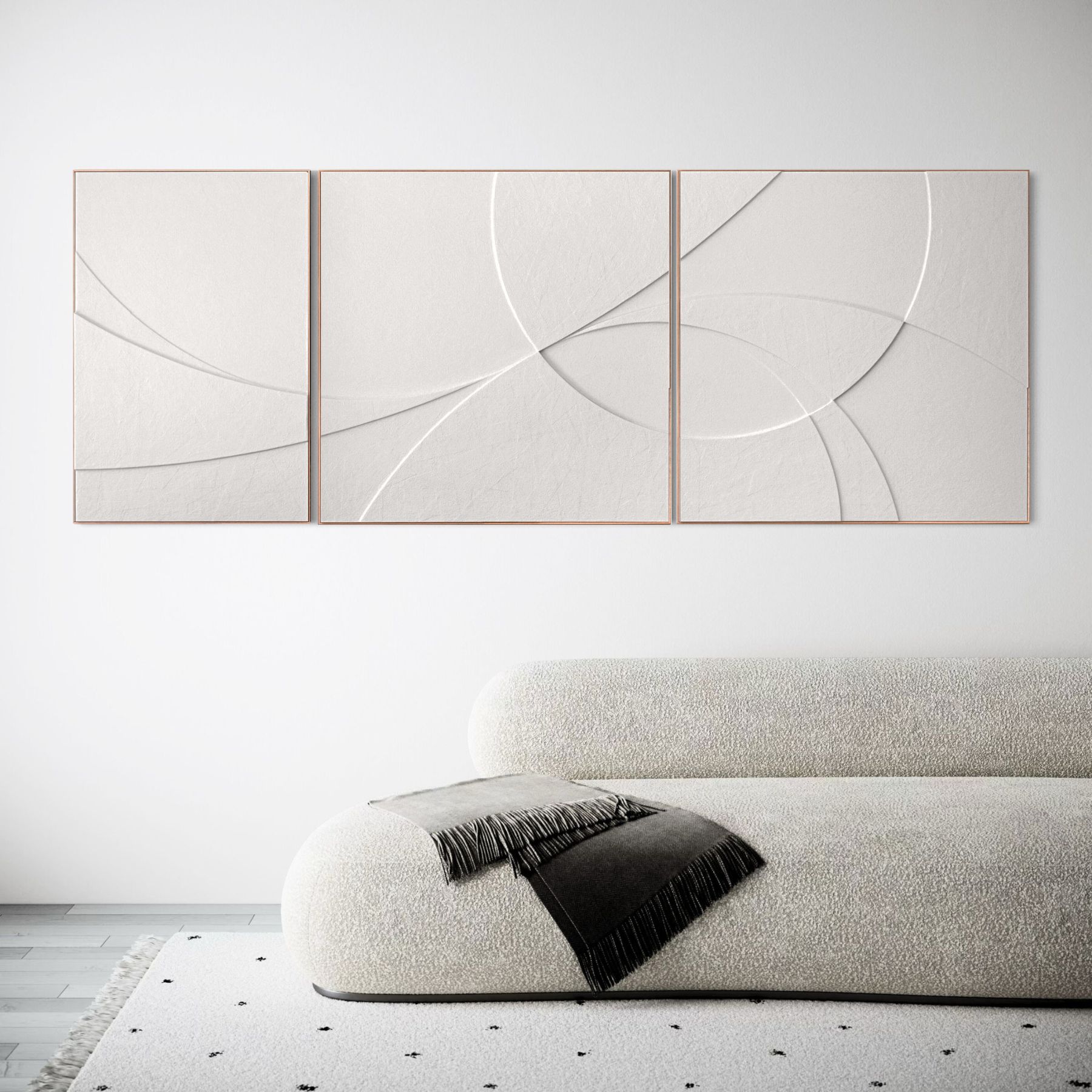 “Over the Moon” captures the grounded energy of orbiting forms in soft motion. This three-panel work invites you to pause, trace the balance of space and stillness, and feel the subtle rhythm it brings to the room.