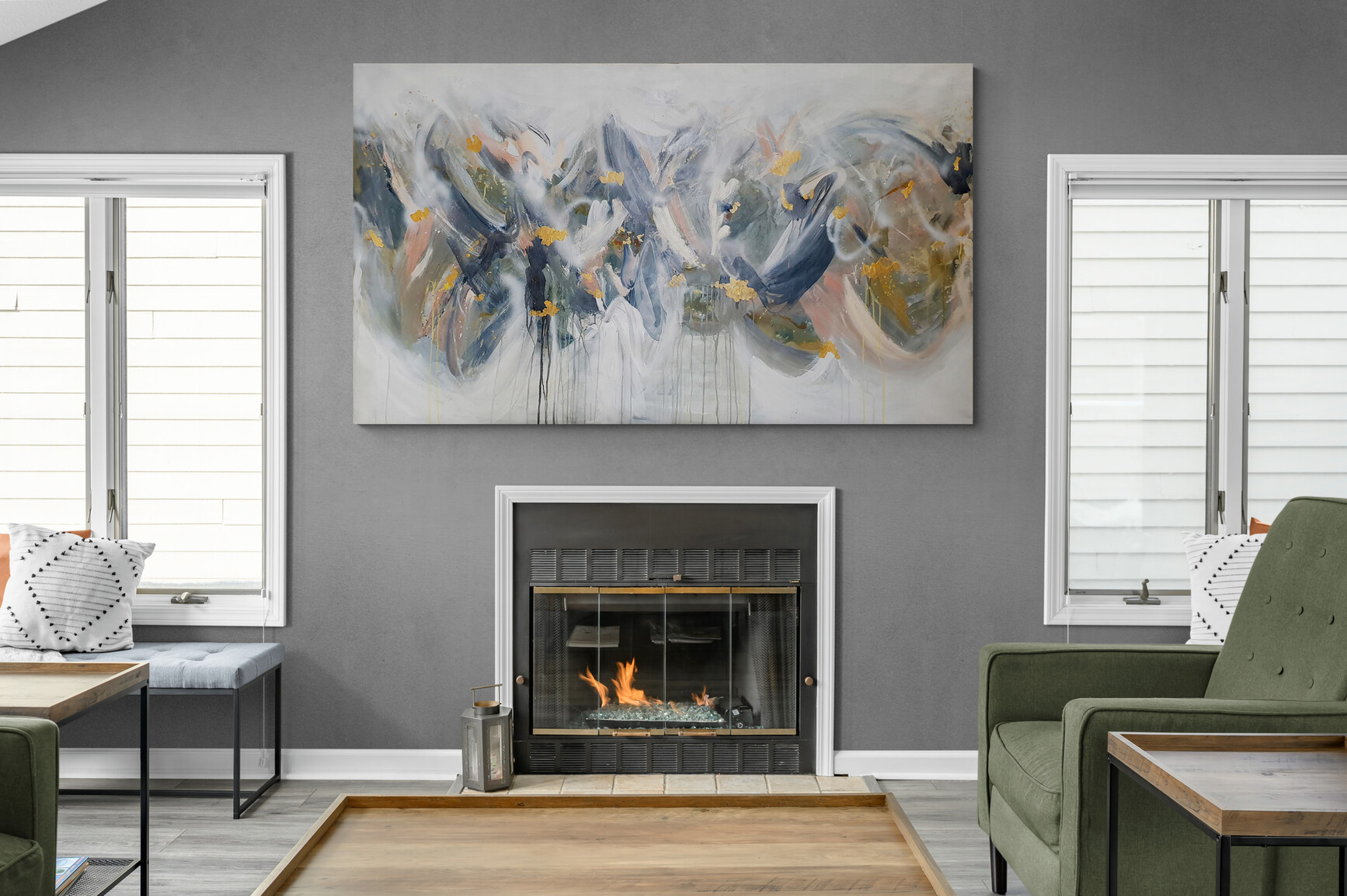 Over the ranges and far away by Fern Siebler – an original from my collection ‘Fragments’, this new piece was completed in 2022. There are flecks of 24 karat gold leaf scattered throughout the mixed media original artwork adding a beautiful depth to the piece.