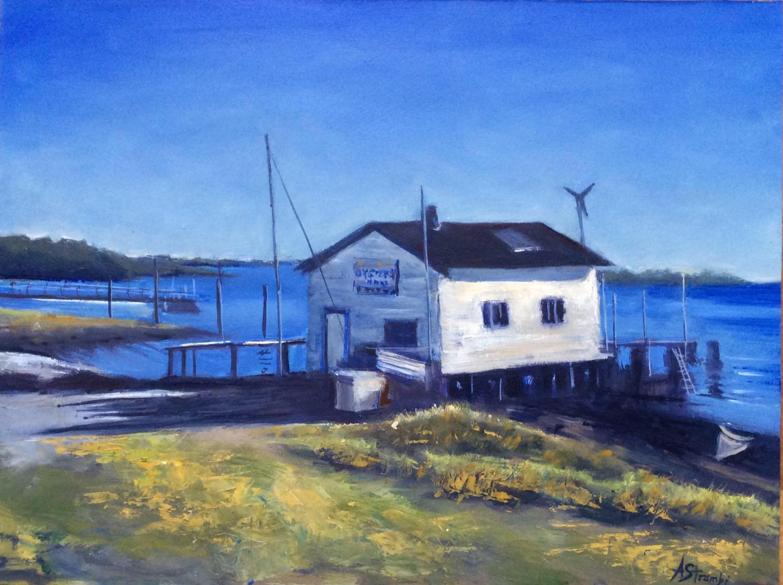 I have wanted to paint this picturesque building on the way into Yamba for quite a while, have taken lots of photos and done some sketches and finally created this painting with the morning light glowing on the side of the shed. I think this is quite an iconic symbol of Yamba!