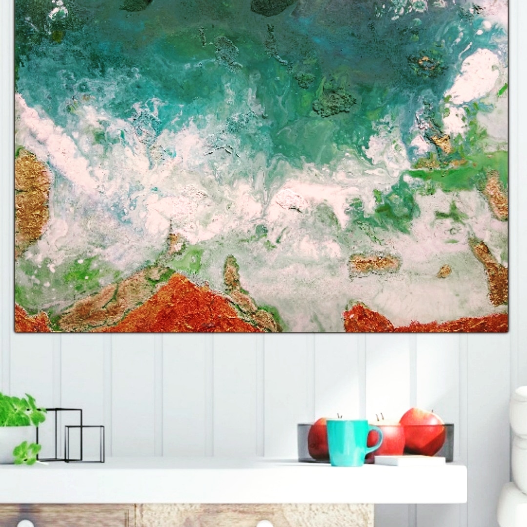 Palm Beach by Valeriya Master– abstract marine mixed Media Artwork on stretched canvas, inspired by amazing blue color shades from dark to the light. Inspired by visiting Palm Beach.