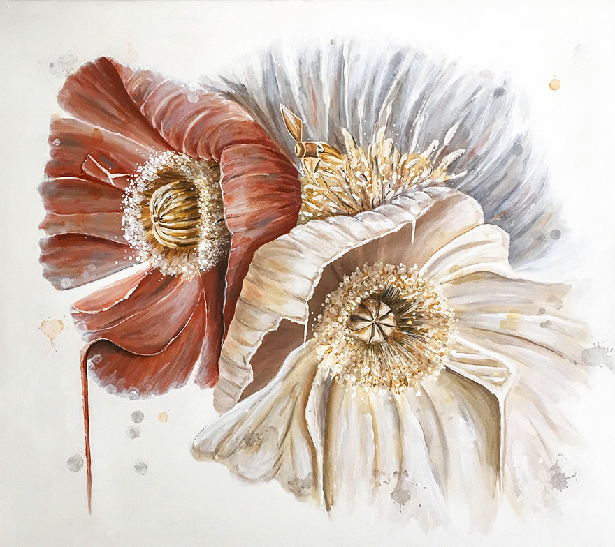Poppies are such a popular subject to paint and it’s not hard to see why. There are so many colours and kinds and all all equally delicate balancing themselves upon slender stems.