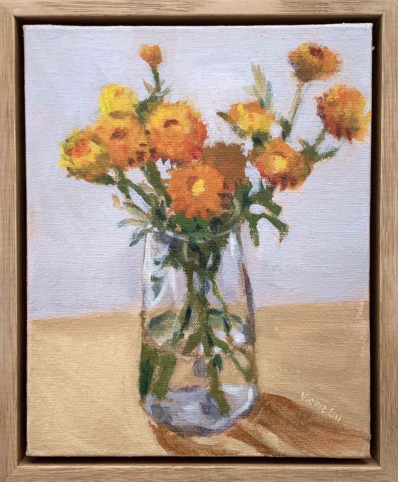 Paper Daisy Still Life Study 1 (Framed in Oak) by Vickie Liu