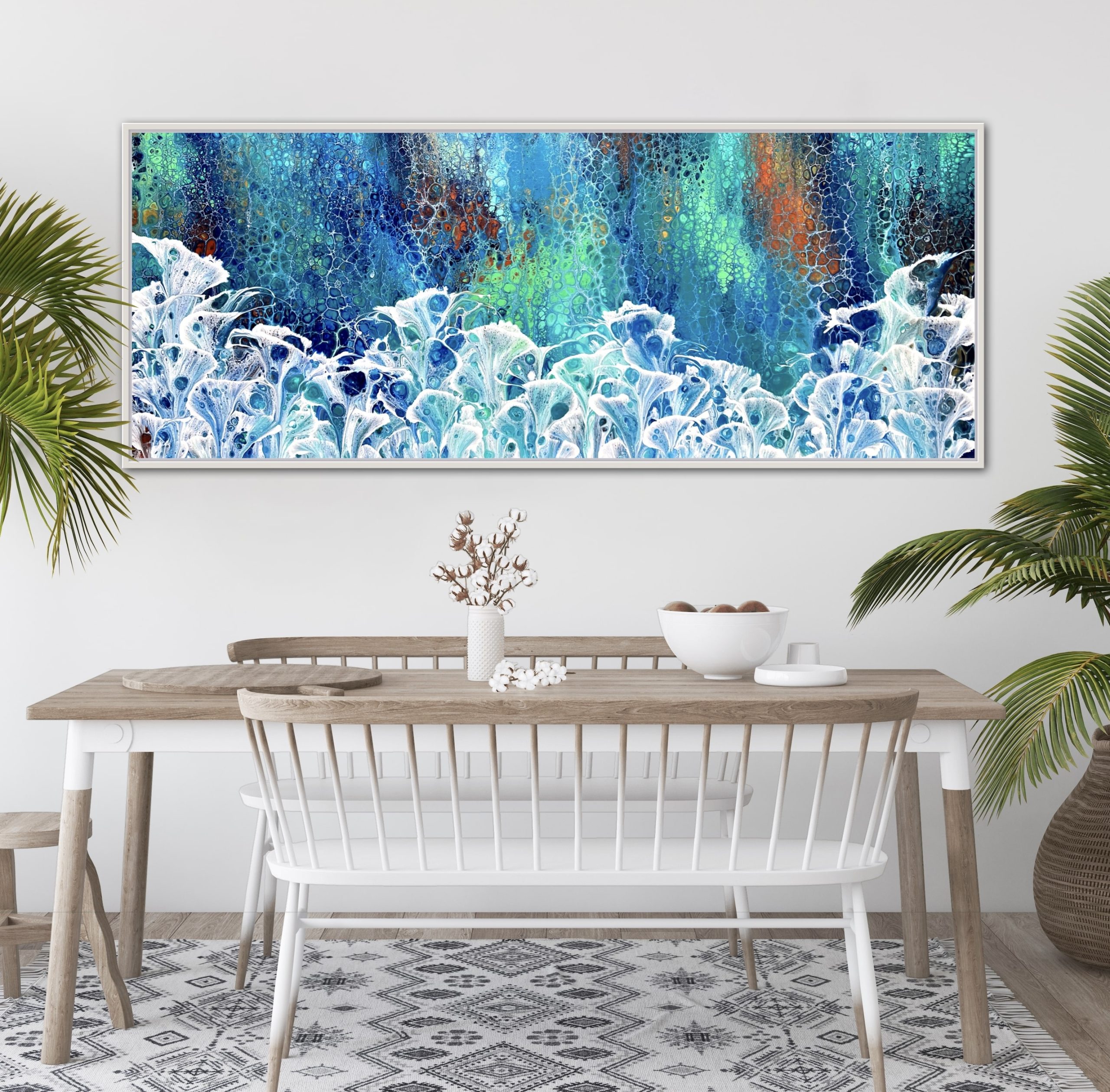 ‘In situ’ photos have been included to help with visualisation of the artwork in your home. In situ photos provided were created using the ArtStage app and may not be perfectly to scale. This being said, every effort has been made to represent the size of the art accurately but please read the dimensions of the artwork to ensure it fits your space perfectly. Where provided, photos of framed art are for illustrative purposes only.