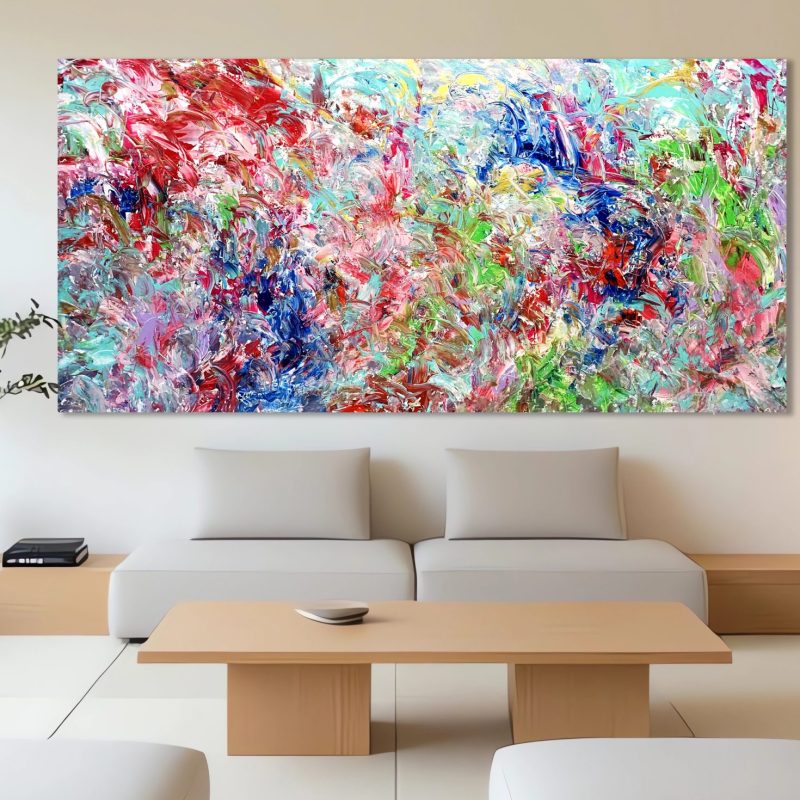 Celebrate vibrant life with this playful green parakeet nestled among a burst of colorful flowers. This lively artwork brings a cheerful, whimsical touch to any space, perfect for brightening your day and inspiring smiles.