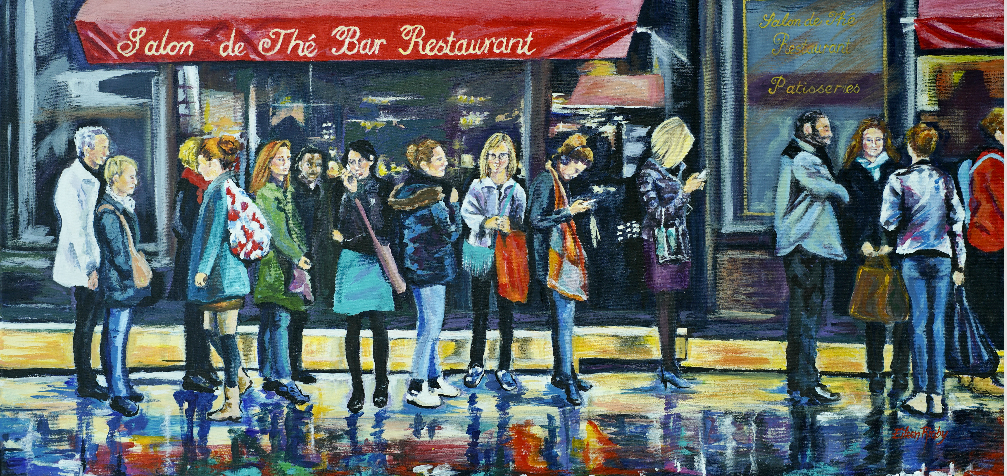 Paris, Waiting in The Rain by Eileen Rigby – The long queue grabbed my attention! If the food and drinks are deemed ‘le top’ then it is worth waiting for in Paris! The French will do without bread if their preferred boulangerie is closed. I love this about living in France where what we eat is high on the list of topics for conversation.