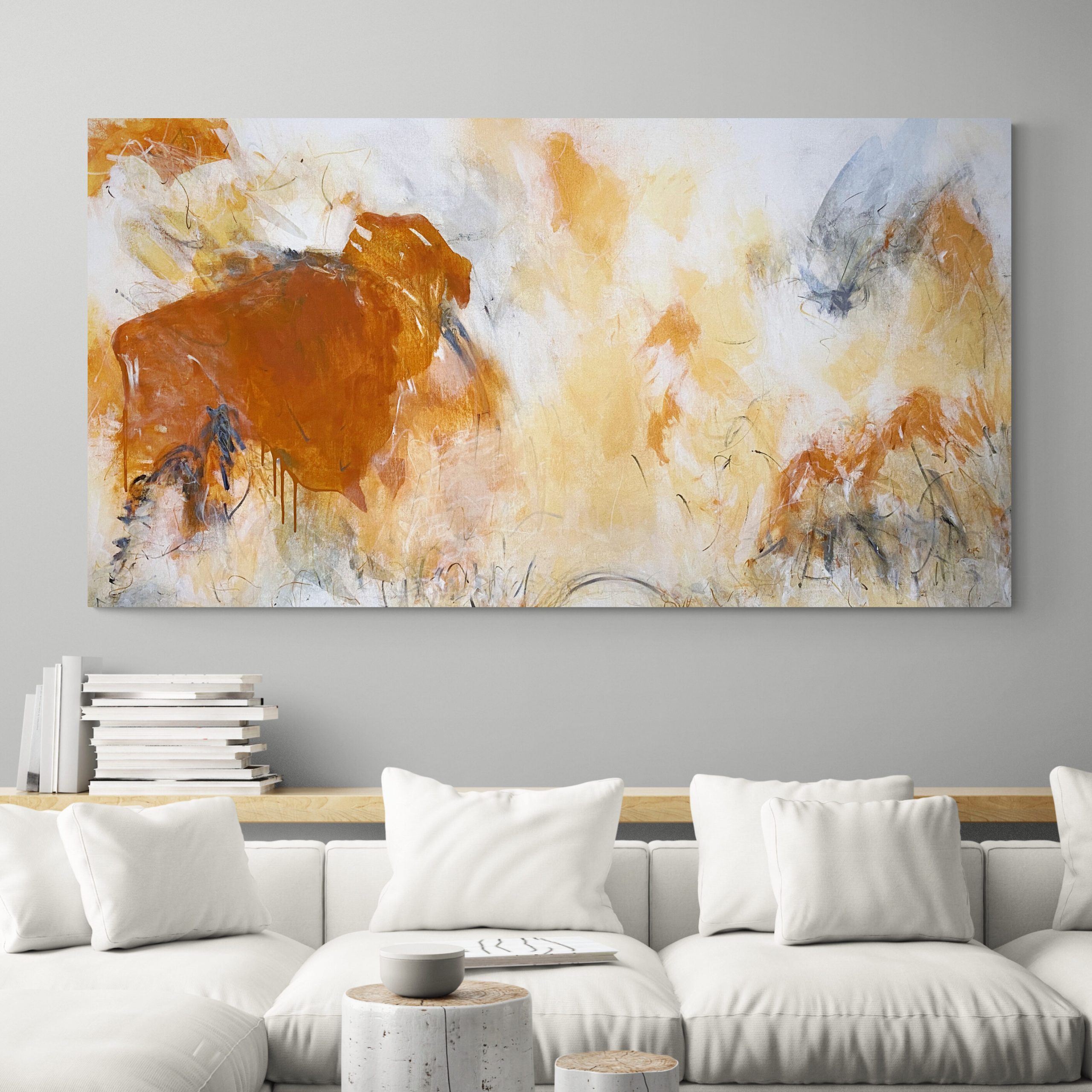Passing Through is an original painting. It’s intriguing expressionist mark making combined with its restful and calm neutral palette is the perfect statement piece for a large space.