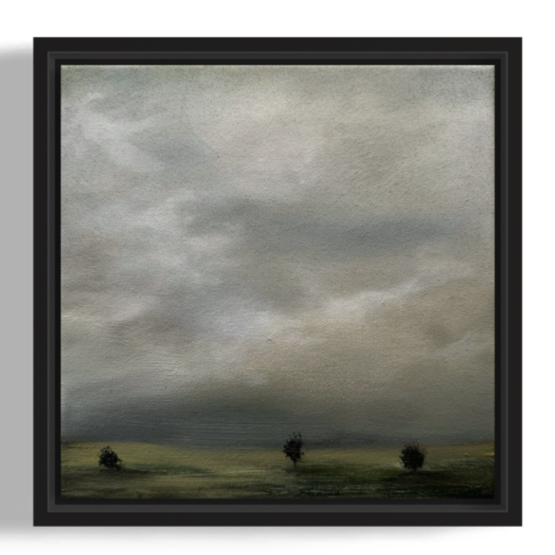 Ready to hang, original oil painting on stretched canvas with Oak floating frame.
