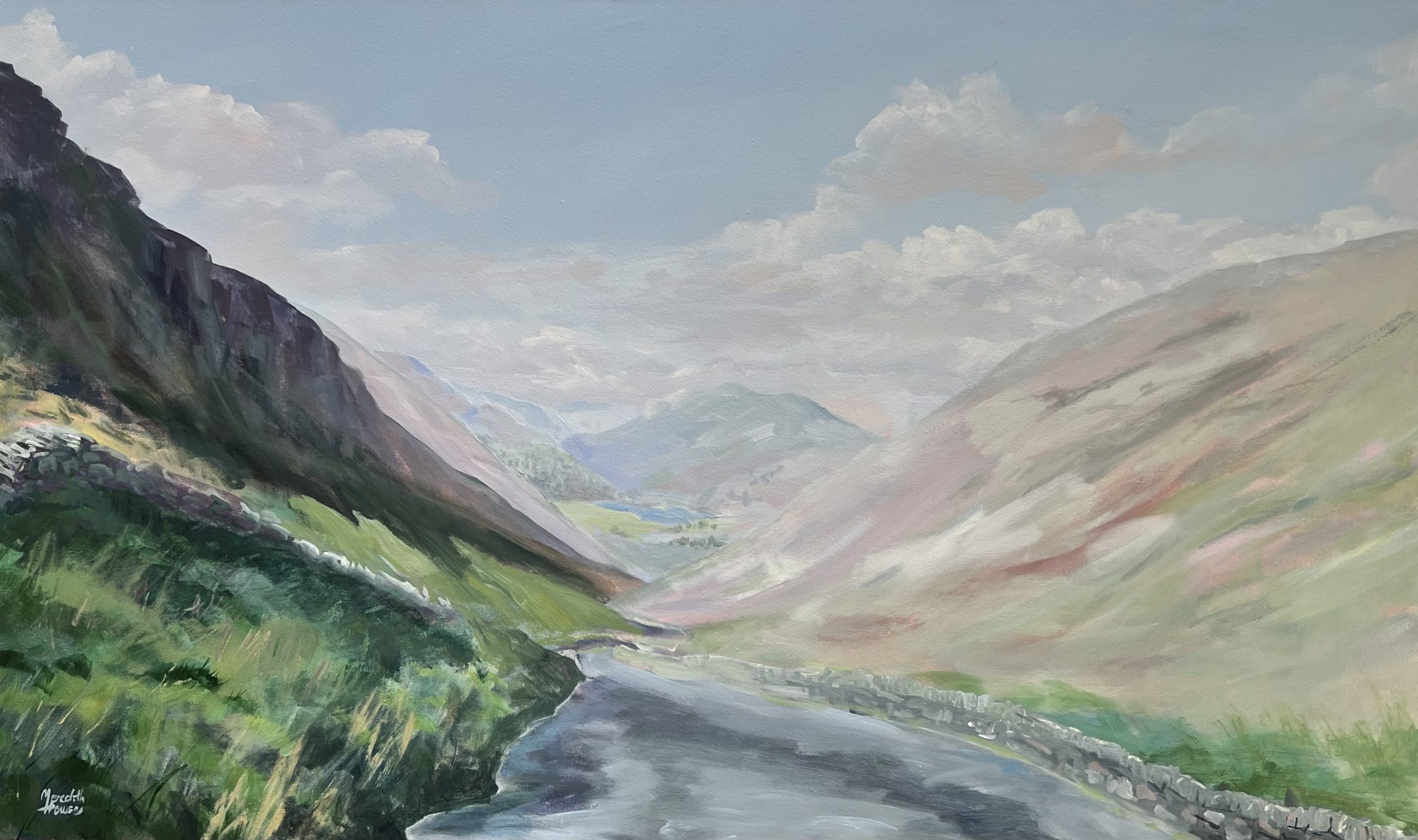 Patterdale by Meredith Howse is a breathtaking artwork that captures the enchanting beauty of the Lakes District in England. This expansive artwork invites viewers into a mesmerising panorama of nature’s grandeur.